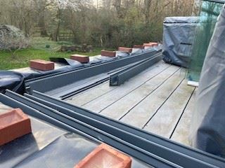The previous deck and balustrade had already been removed, and the waterproofing layer had been repaired before our installation began.