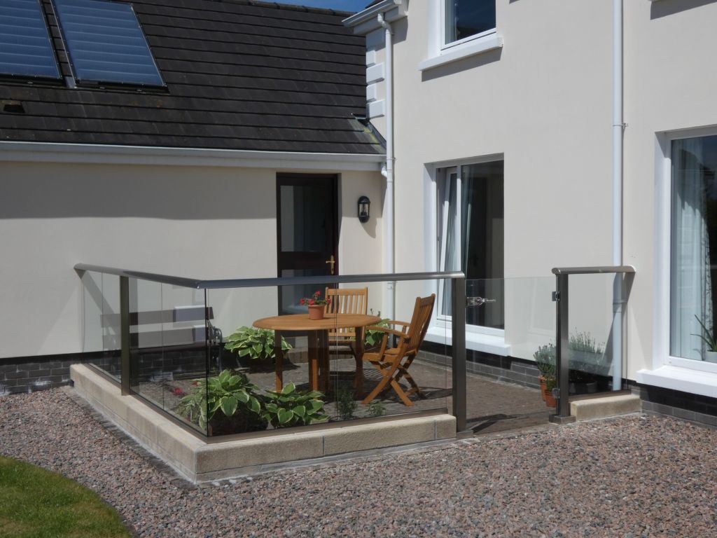 Bruce and Heather Crawford self-installed the balustrade, topped with an Aerofoil handrail, to create a sheltered west-facing terrace behind their home near Banbridge, Northern Ireland.