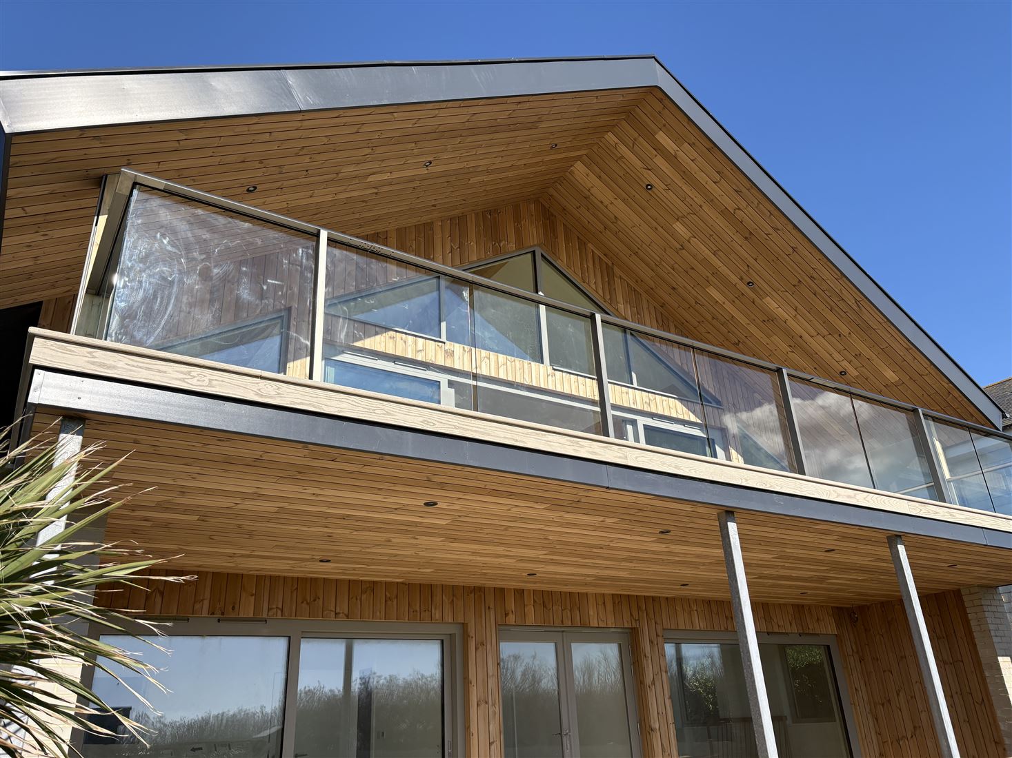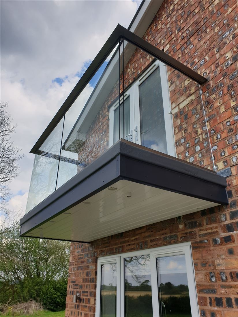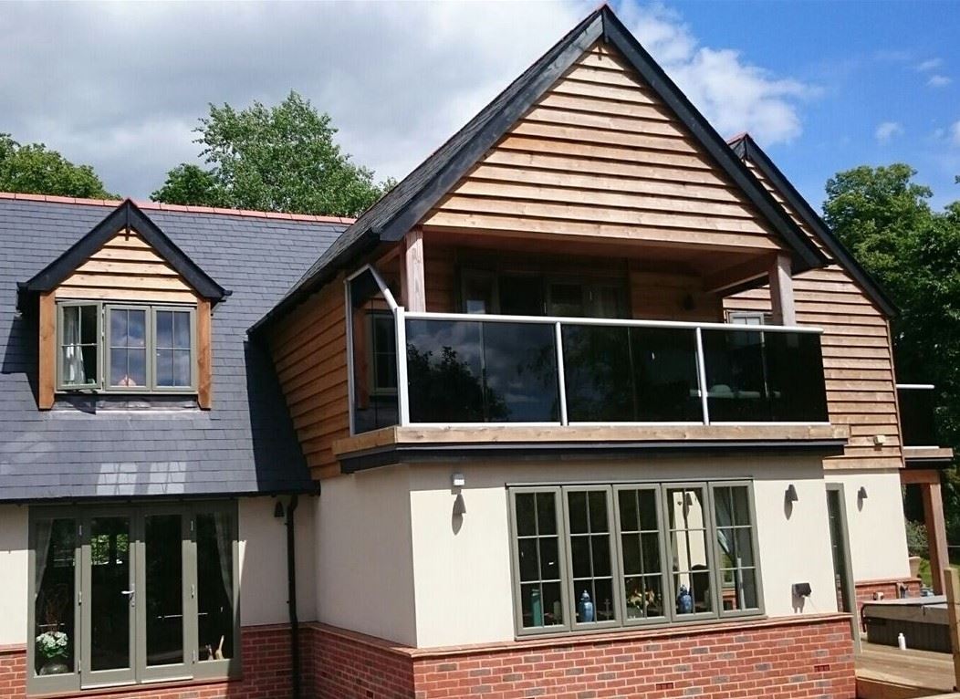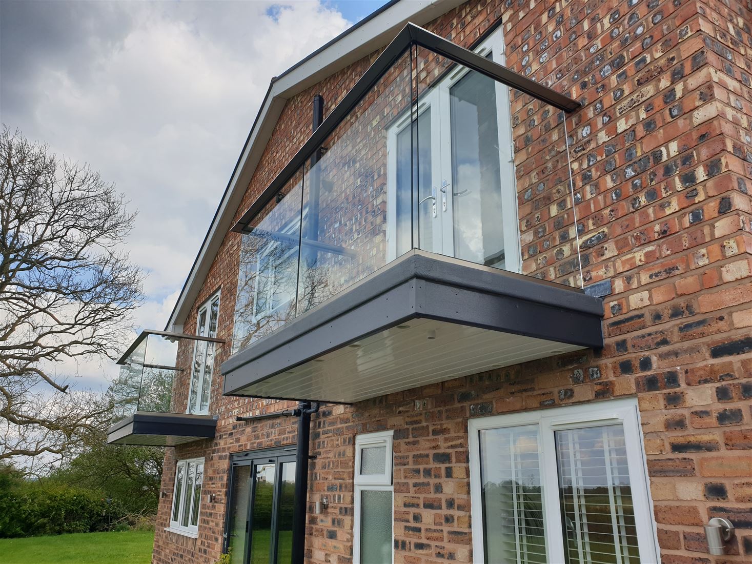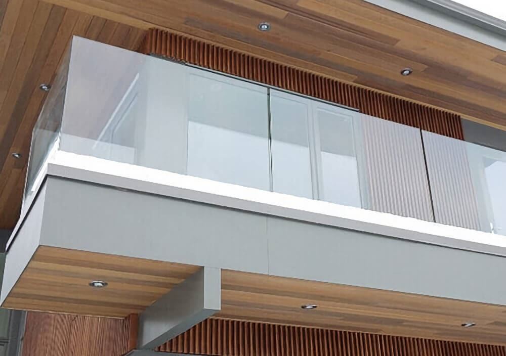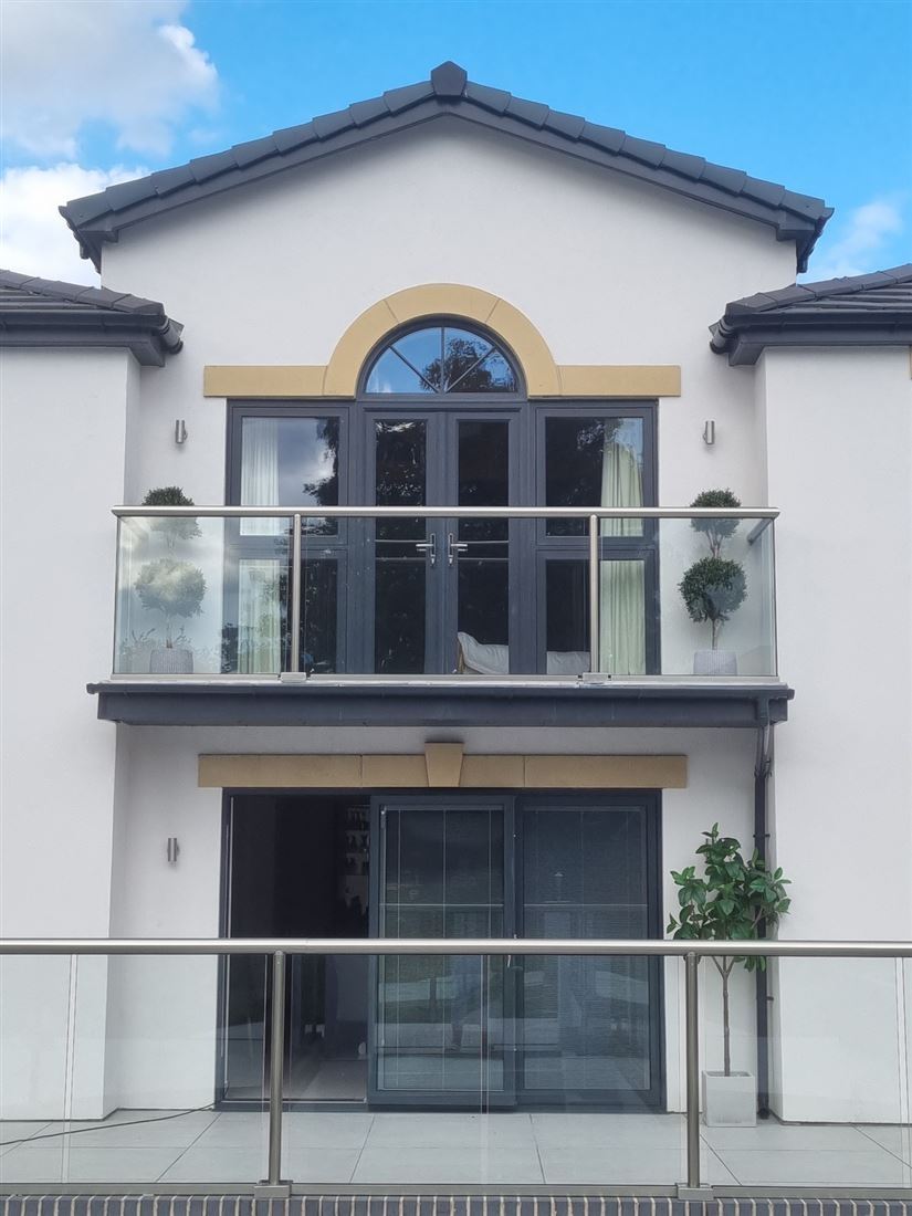 Intricately designed house with stunning glass balcony and Royal Chrome handrails