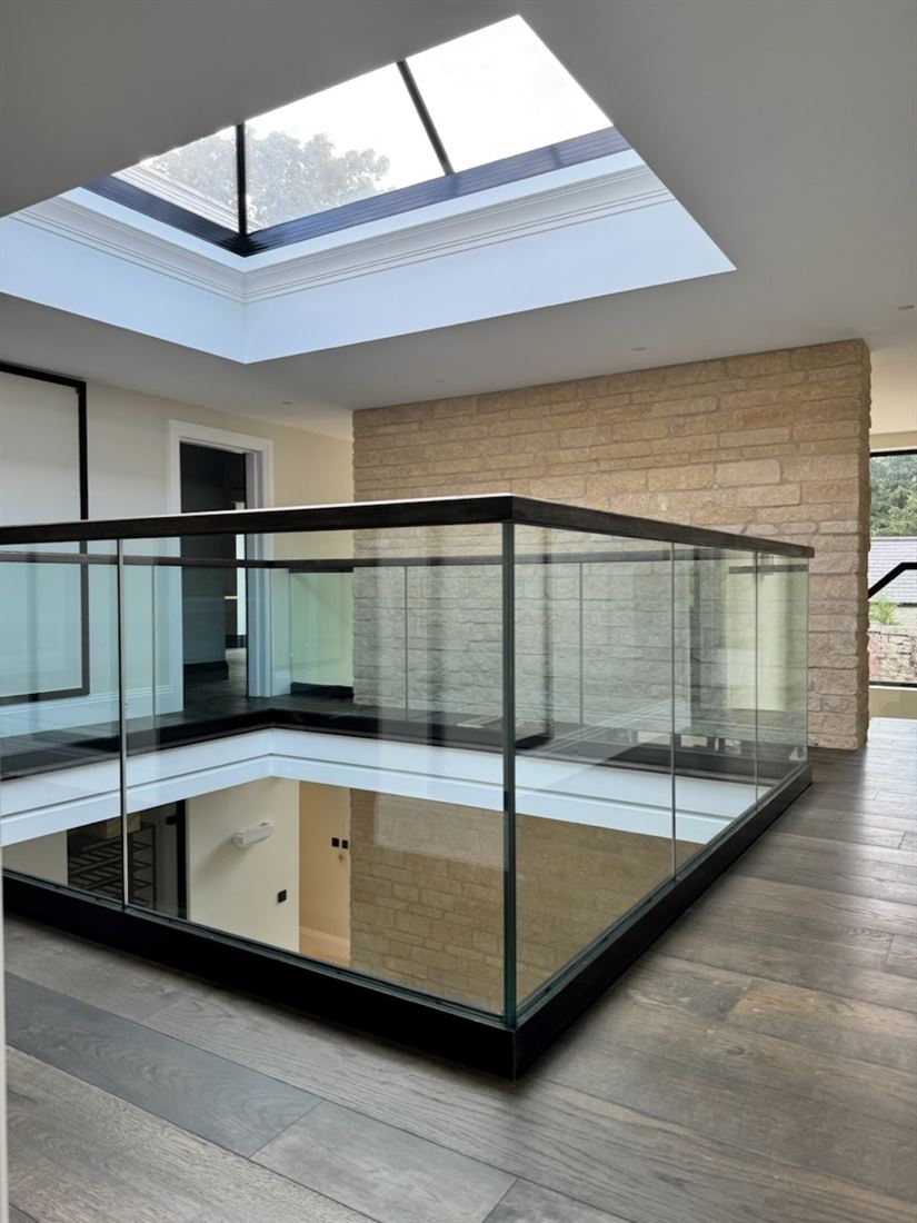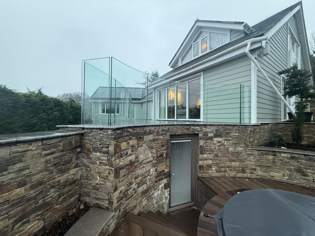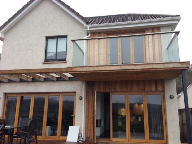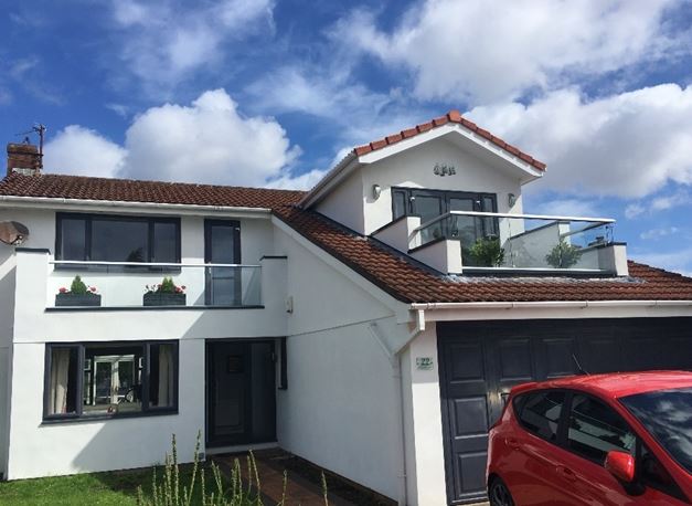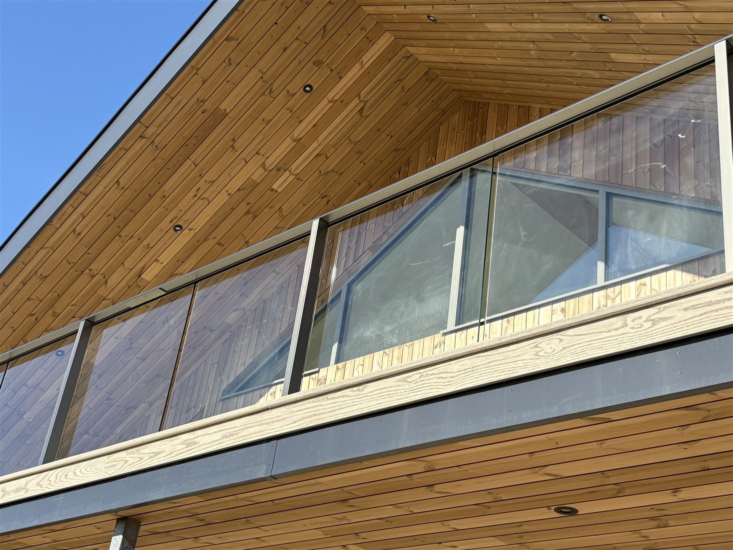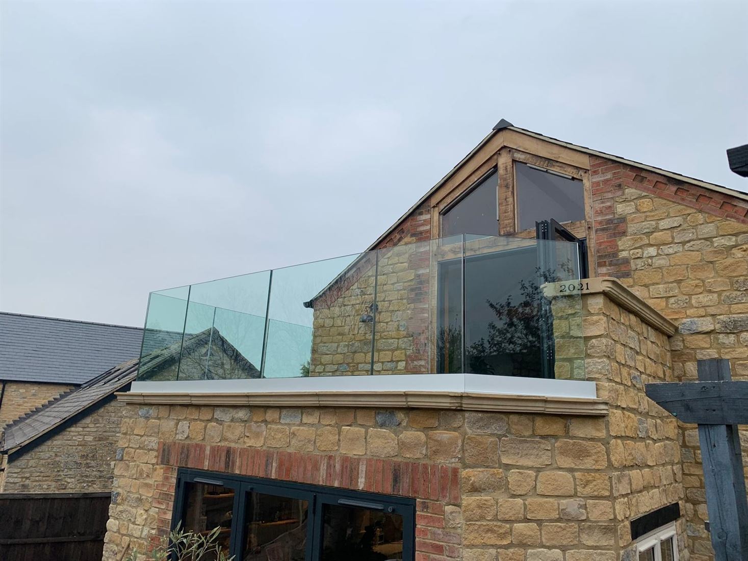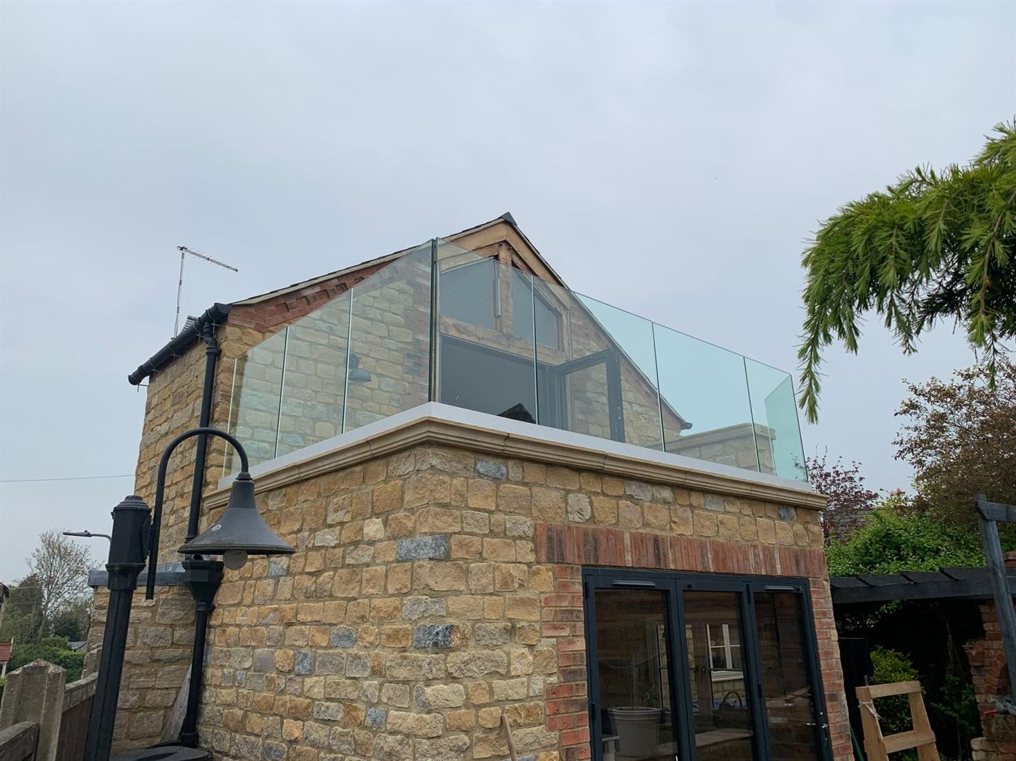 Intricately designed house with stunning glass balcony and Royal Chrome handrails