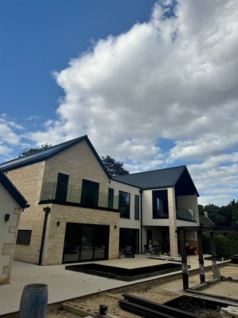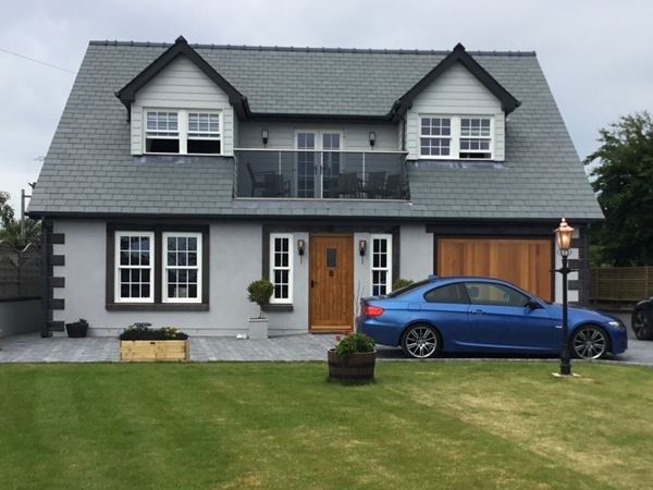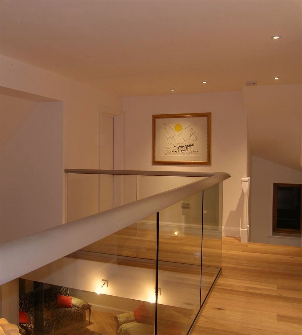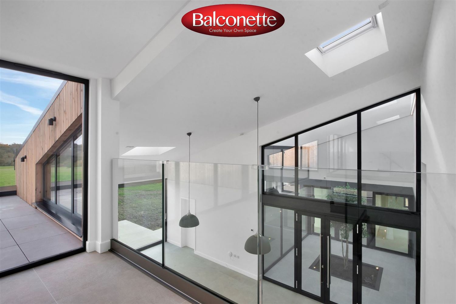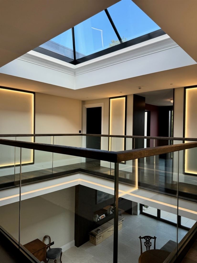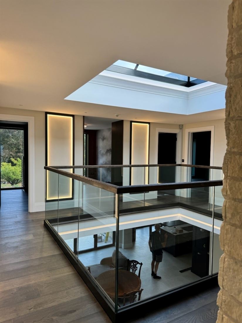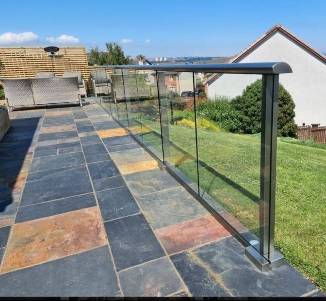 Intricately designed house with stunning glass balcony and Royal Chrome handrails