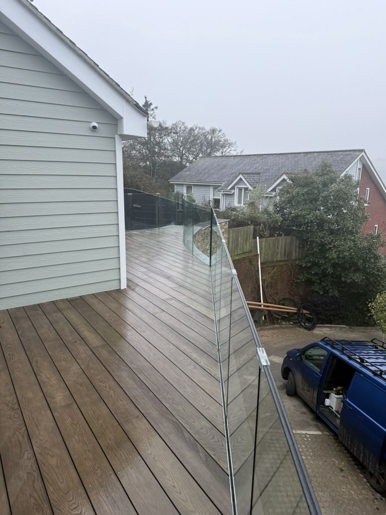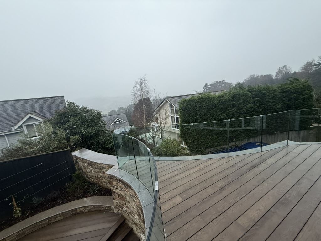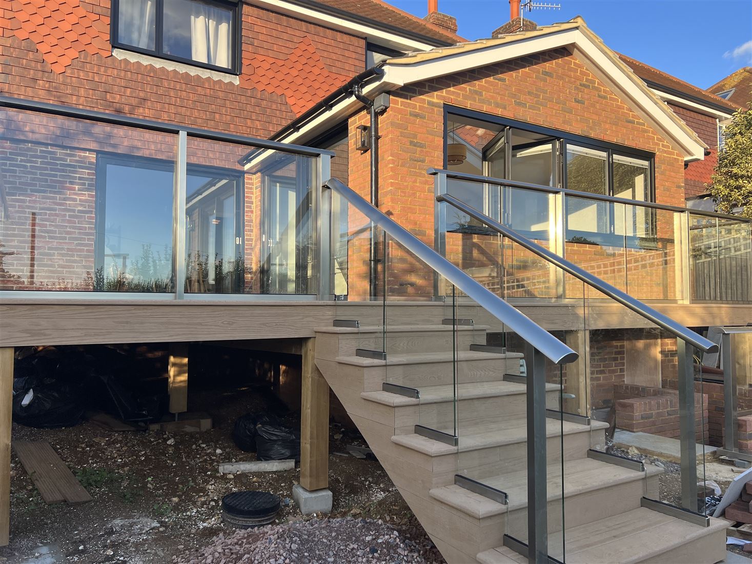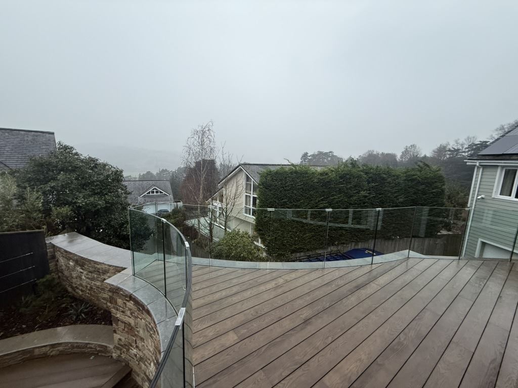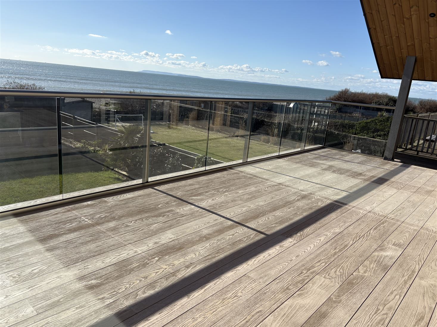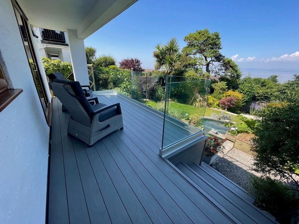 Tinted glass balcony with Royal Chrome handrails and Composite Decking