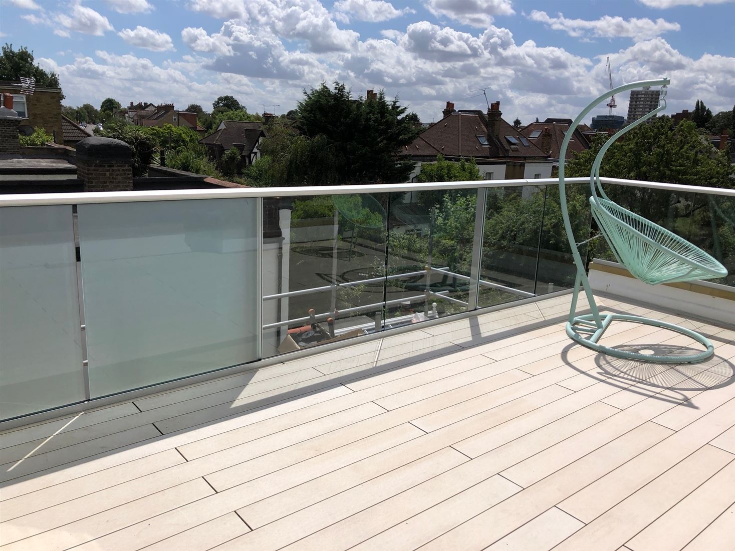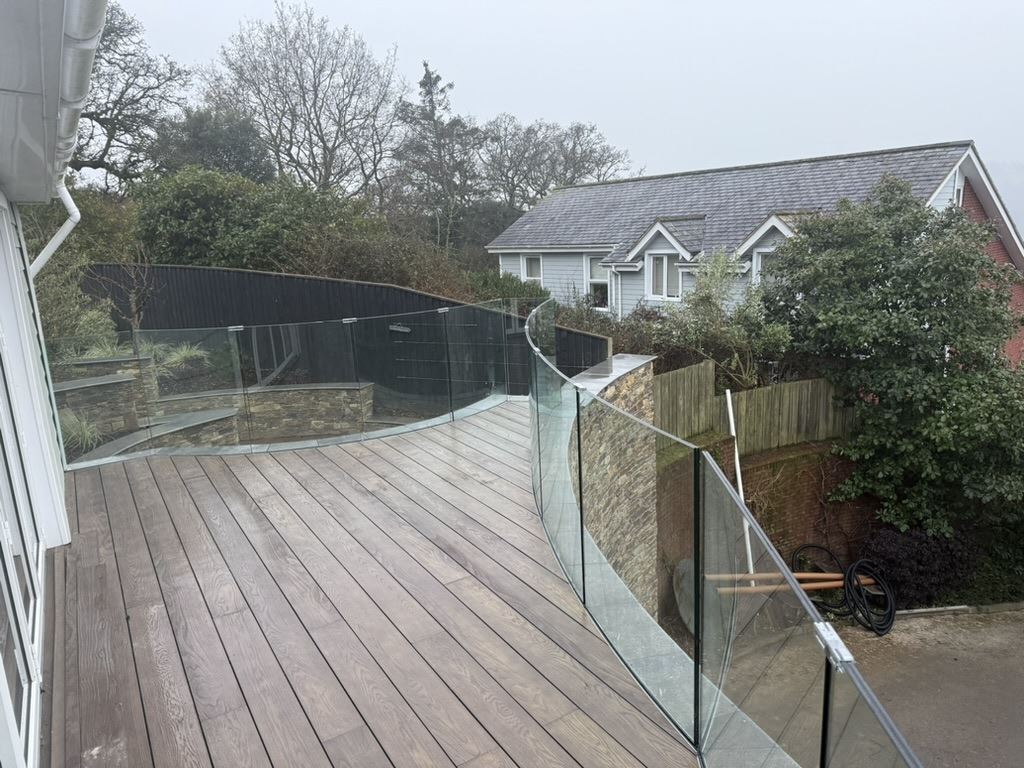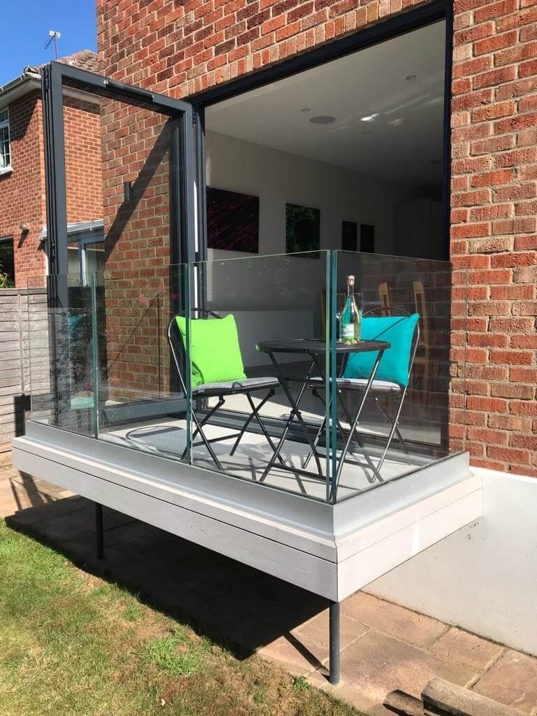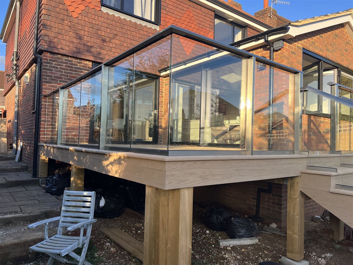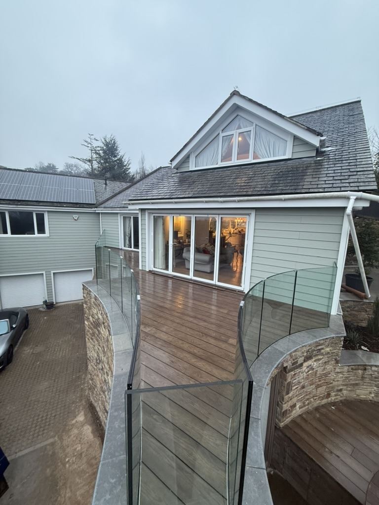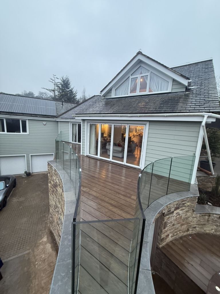 Tinted glass balcony with Royal Chrome handrails and Composite Decking
