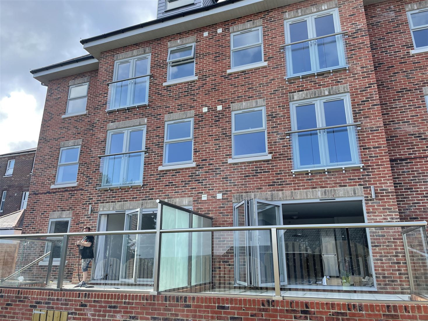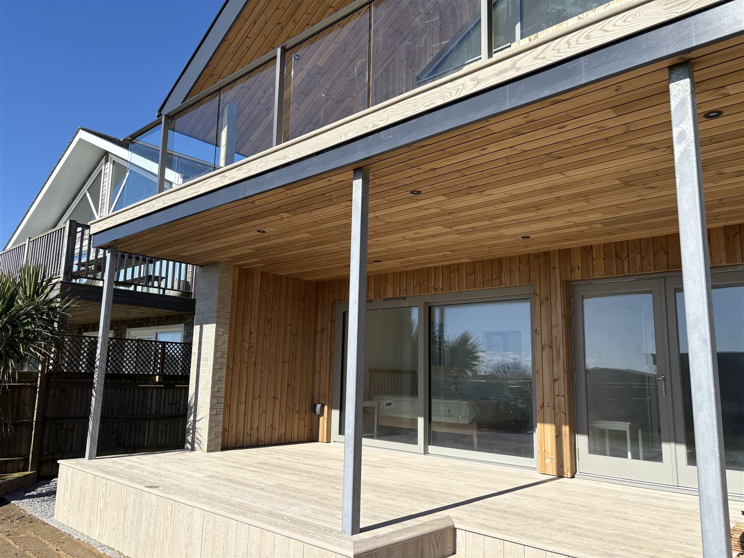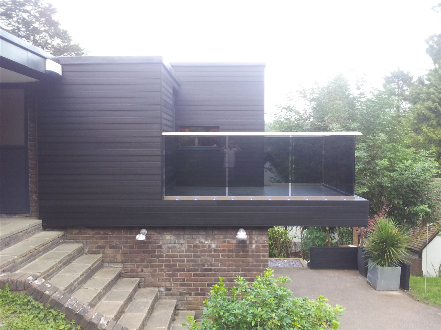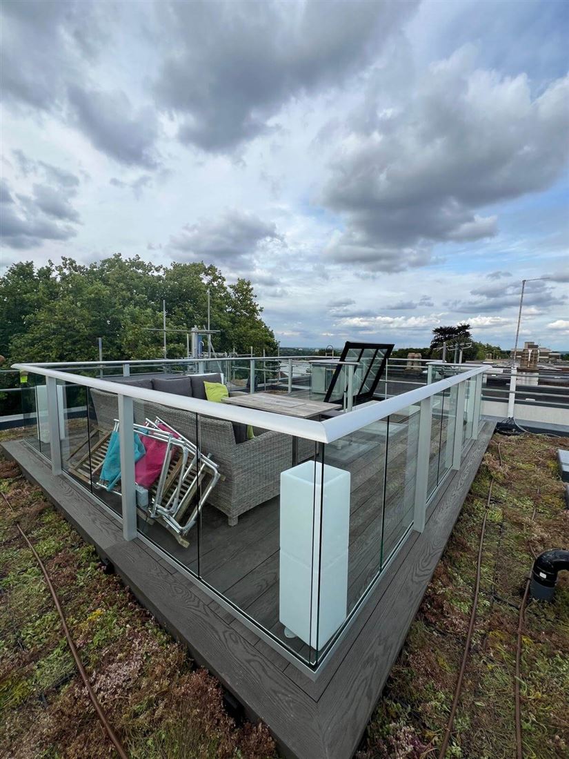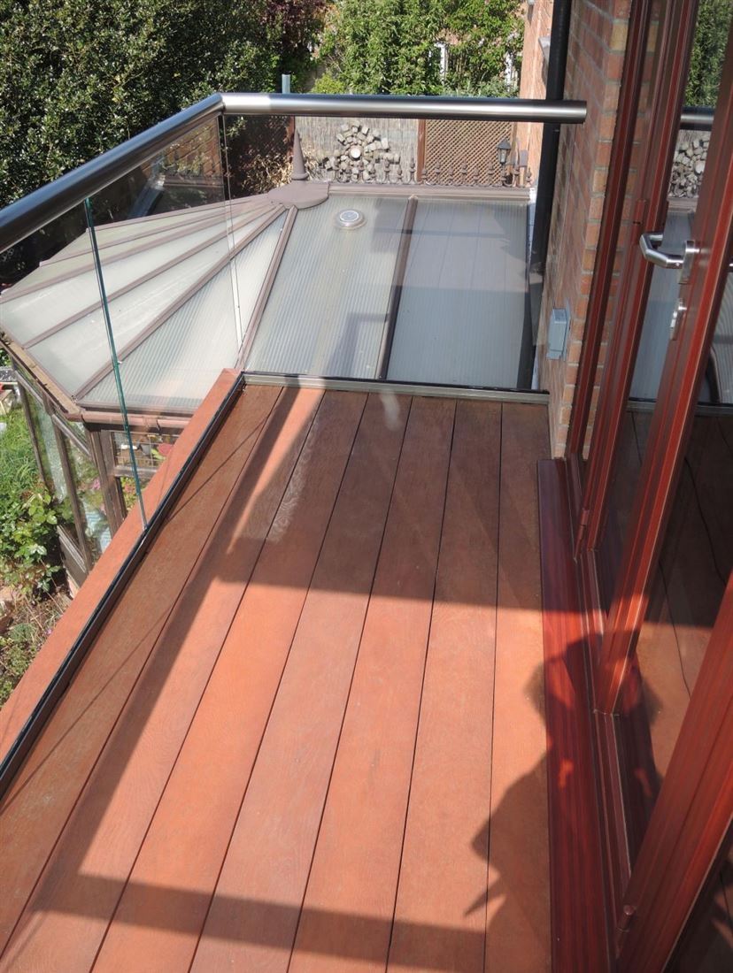 Tinted glass balcony with Royal Chrome handrails and Composite Decking