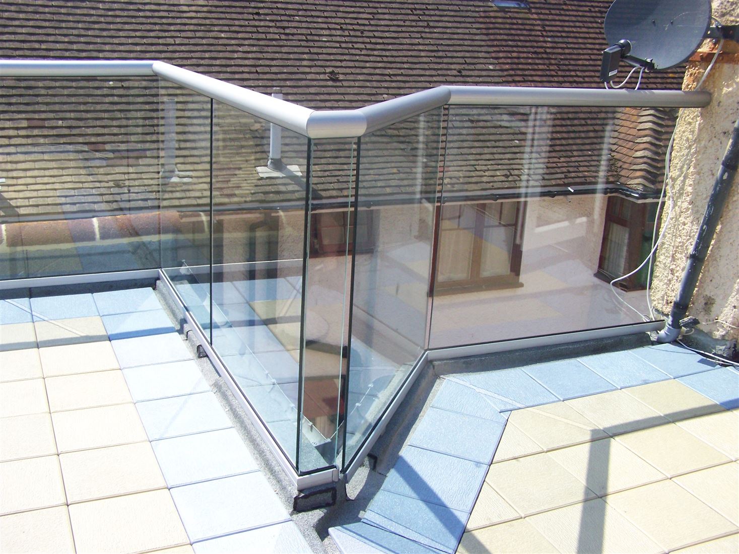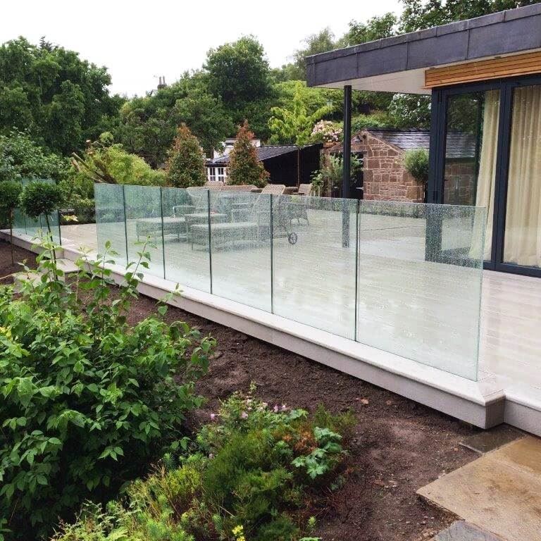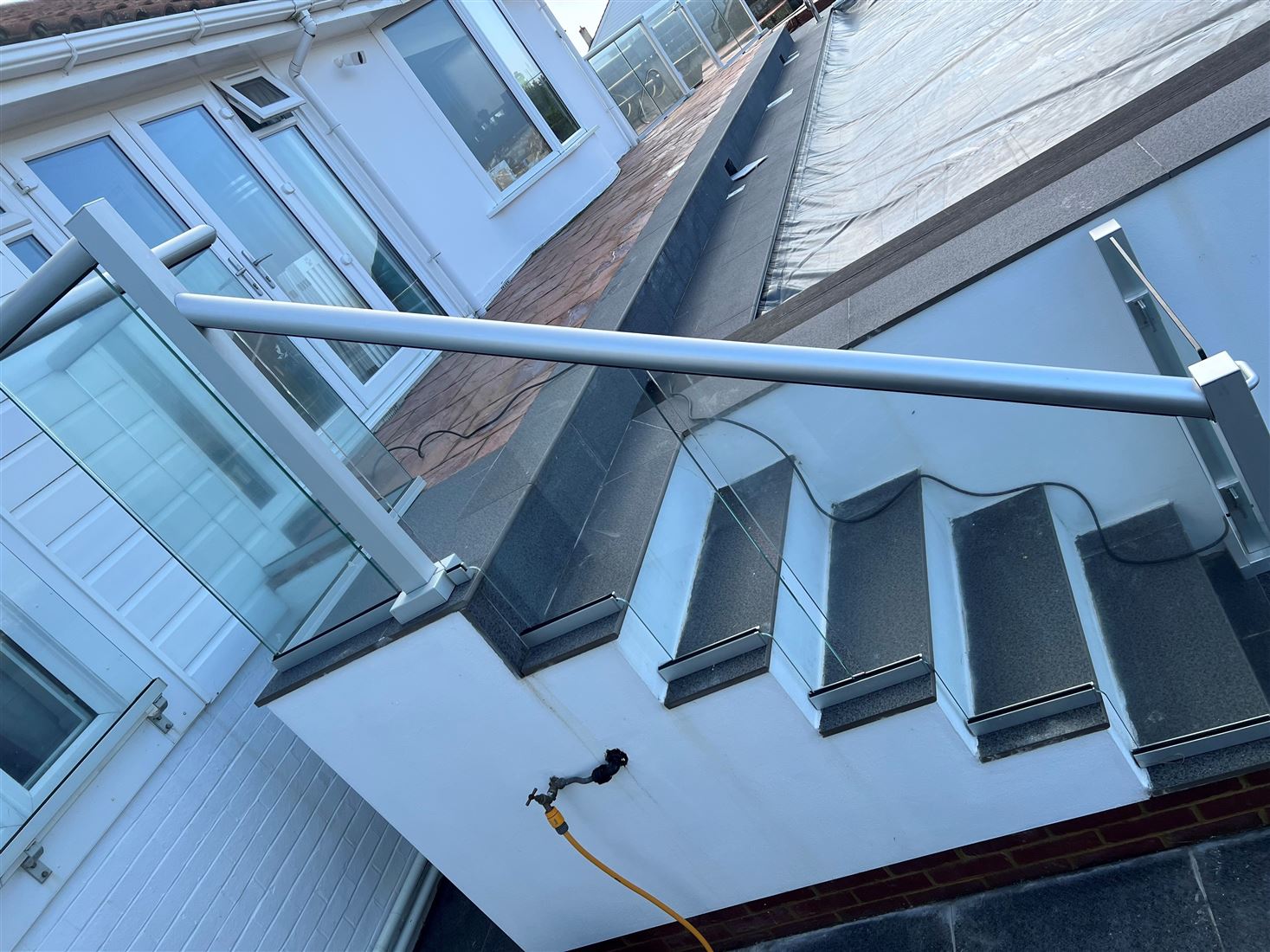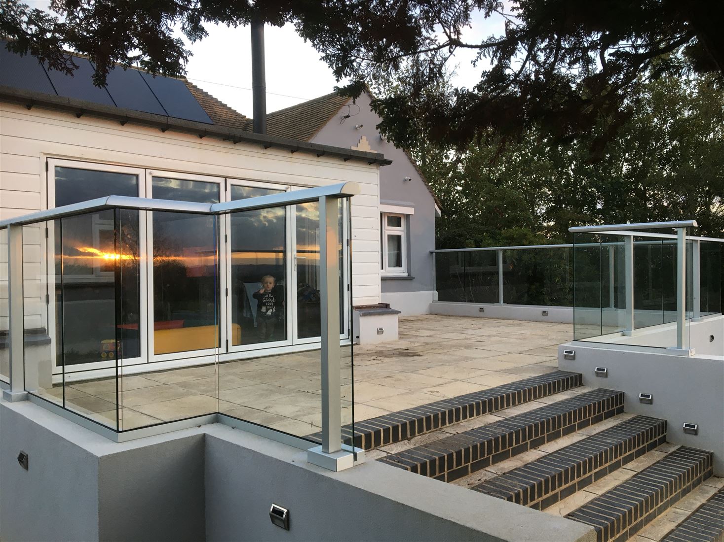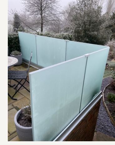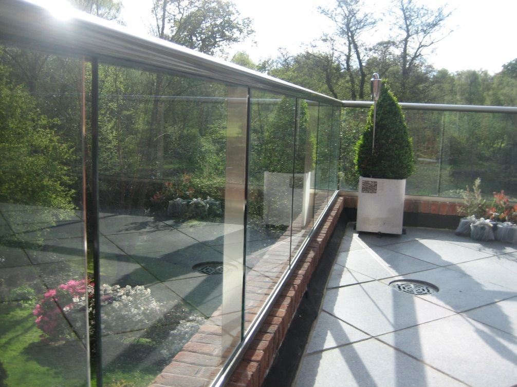 Large Royal Chrome balustrade with high frosted glass privacy screens