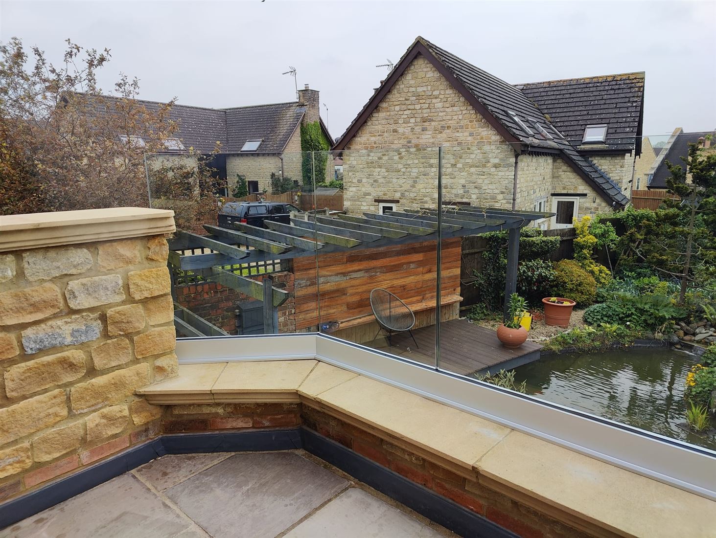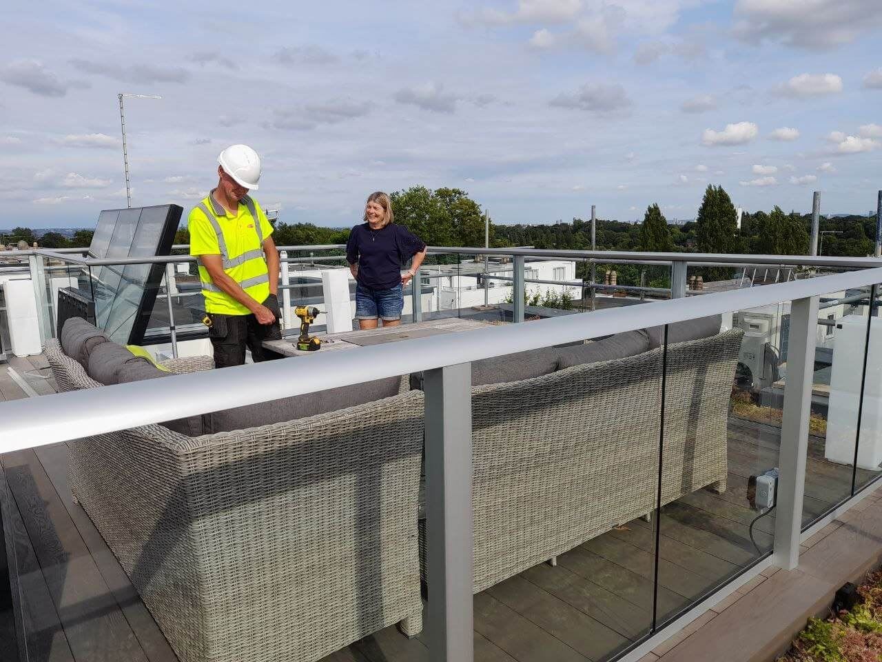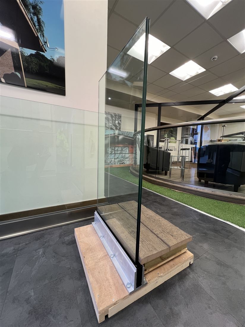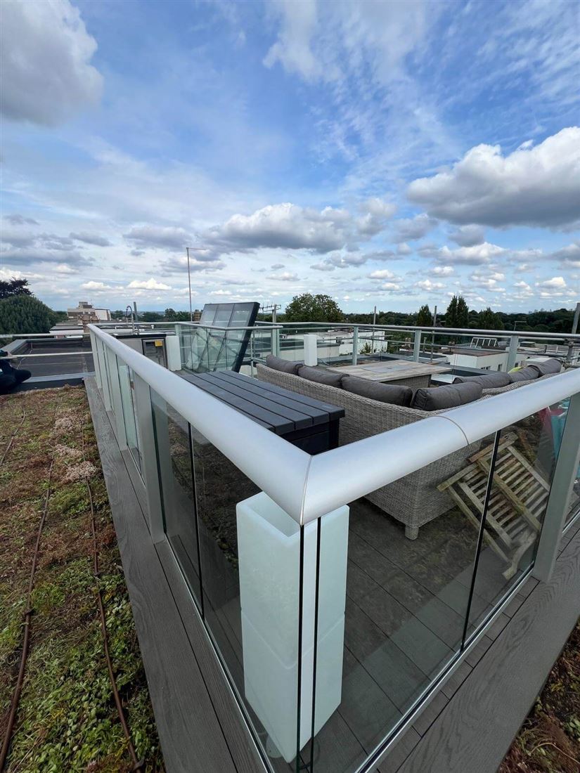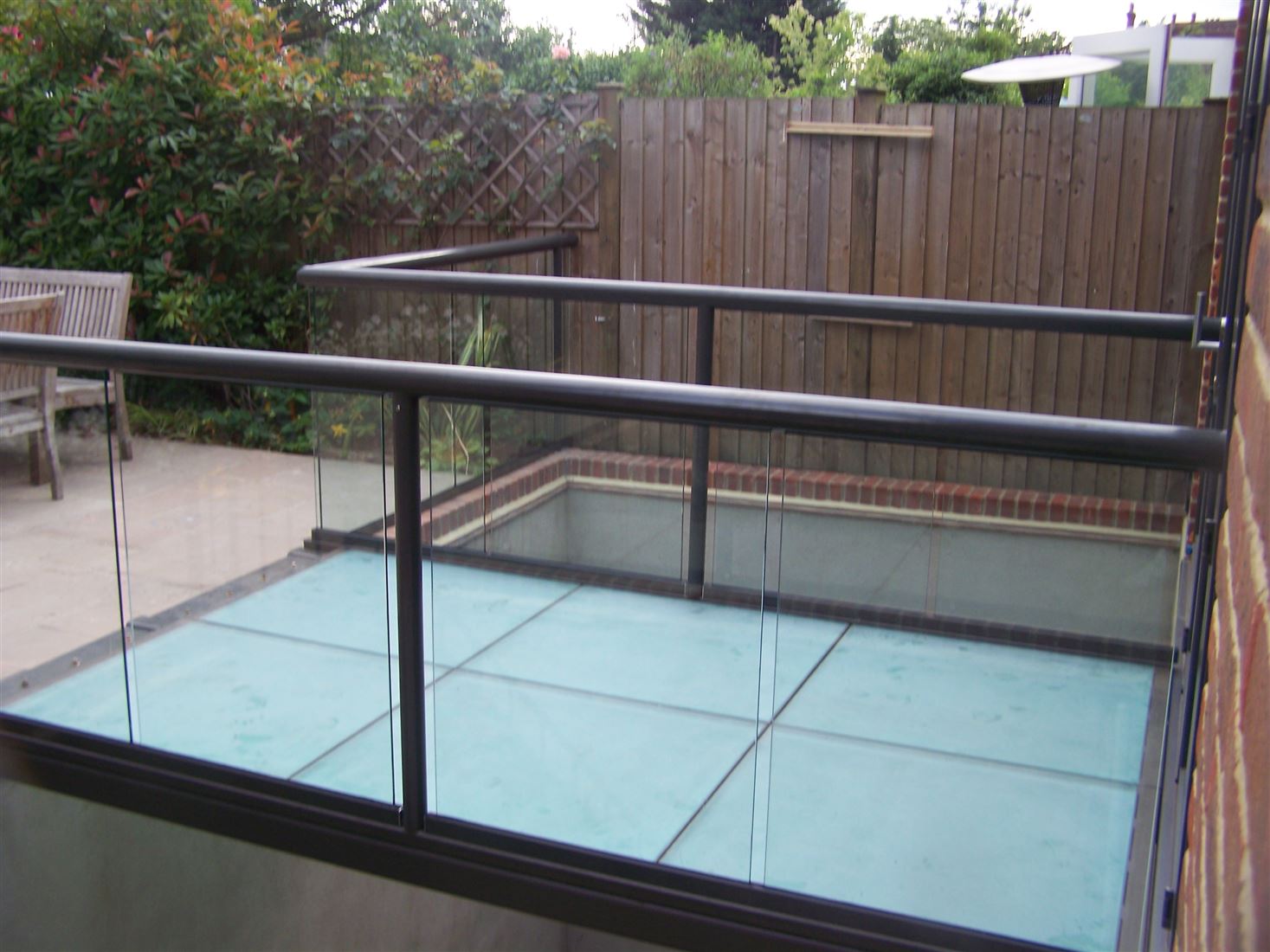 Large Royal Chrome balustrade with high frosted glass privacy screens