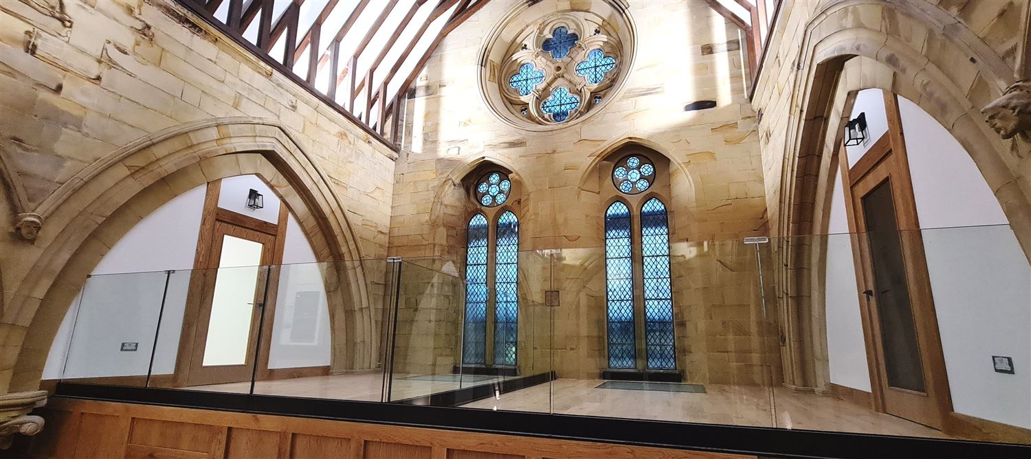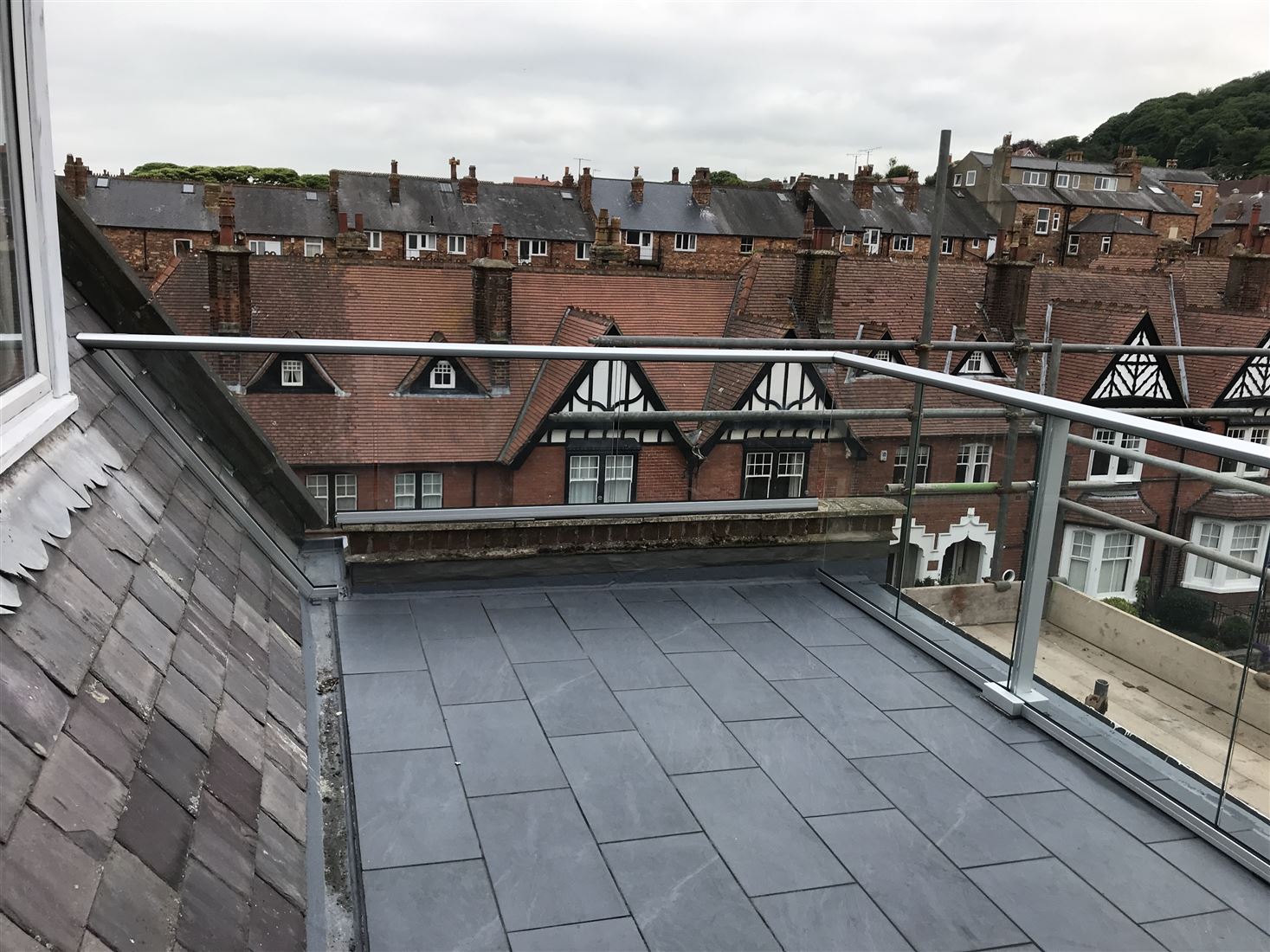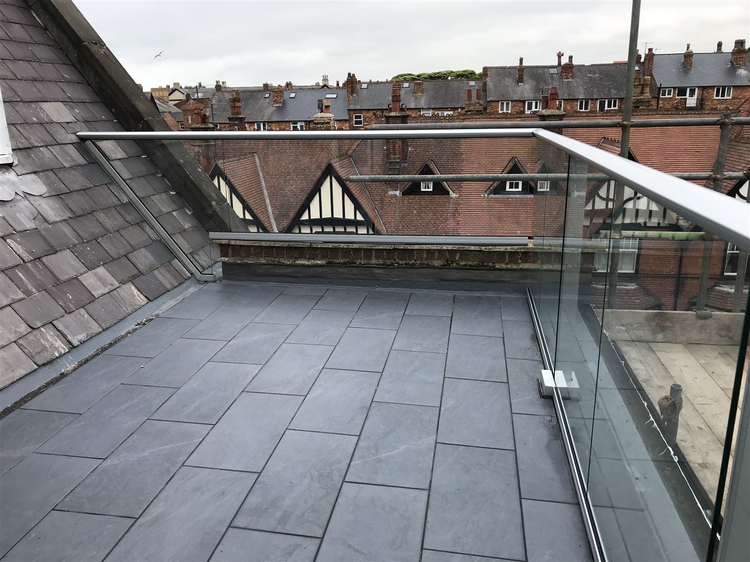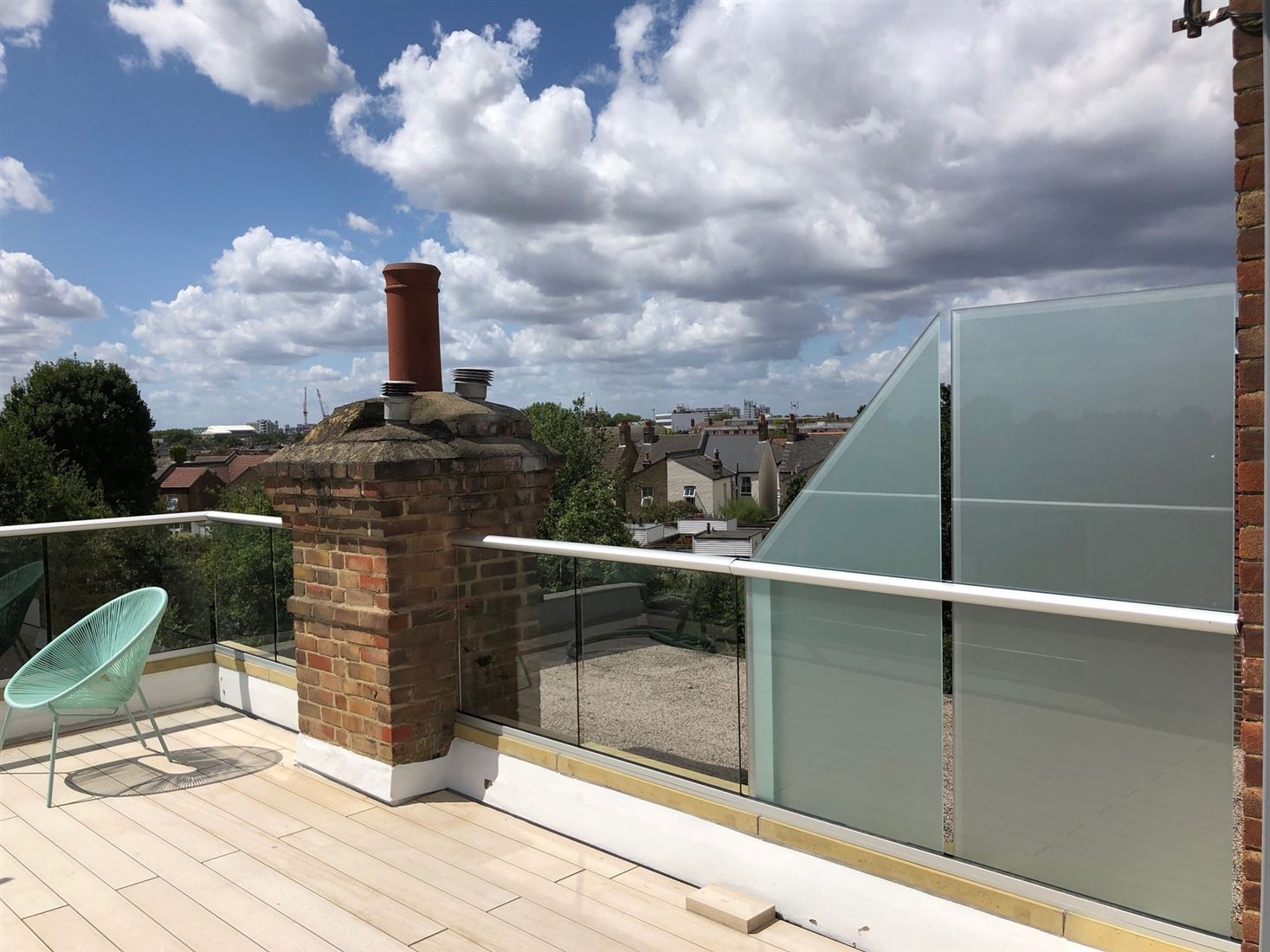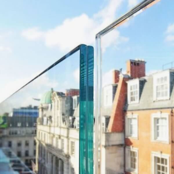 Large Royal Chrome balustrade with high frosted glass privacy screens