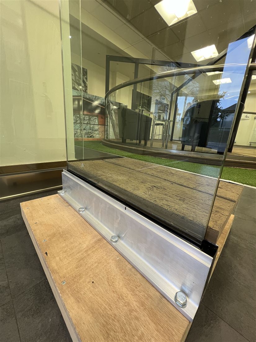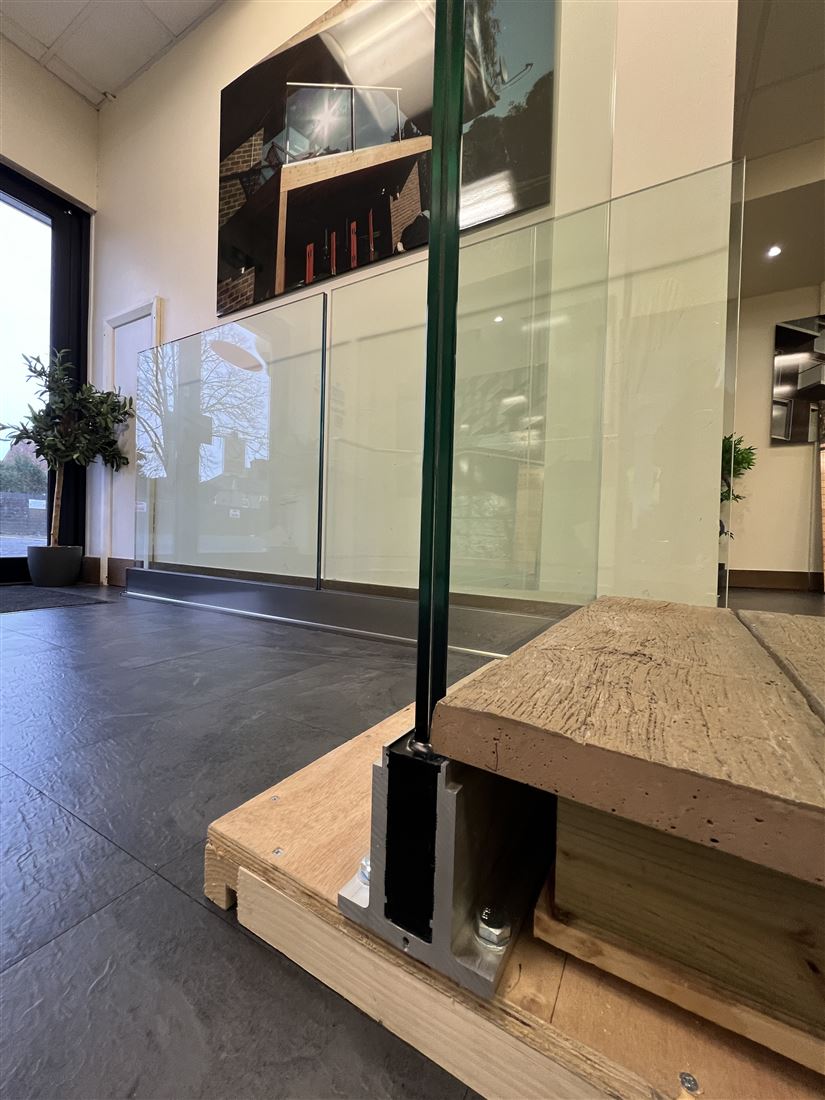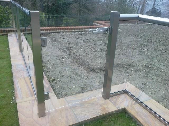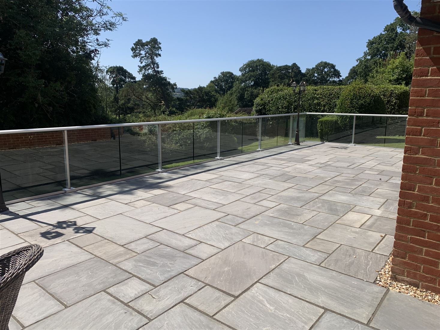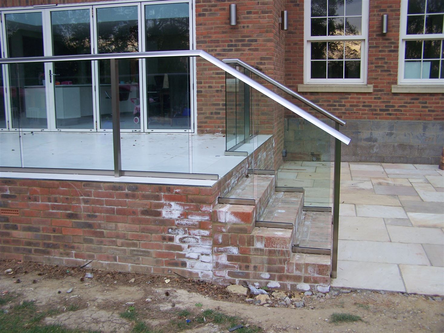 Long balustrade with clear glass and Royal Chrome handrails and posts