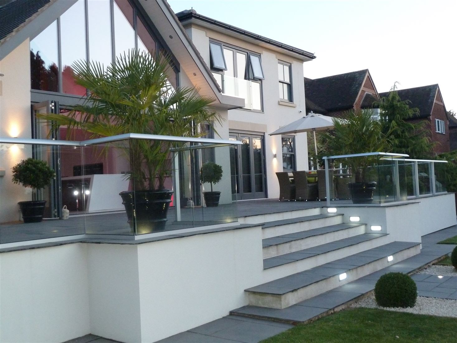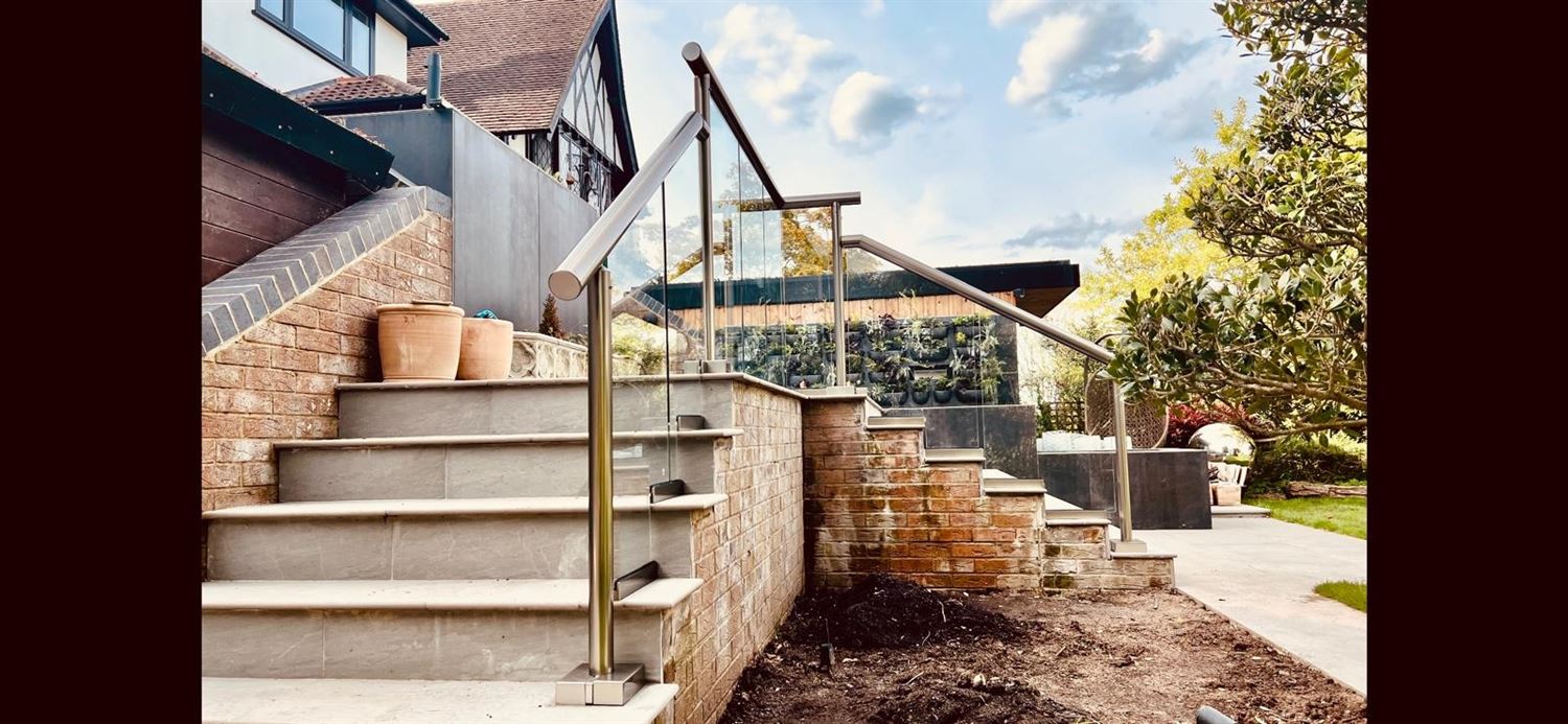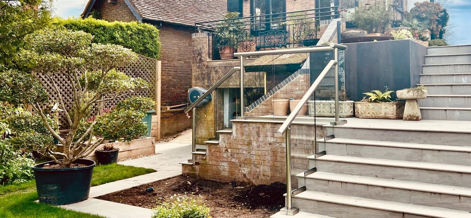 Royal Chrome balustrade on balcony and stairs to pretty garden