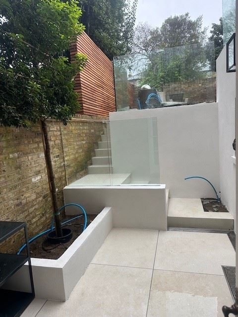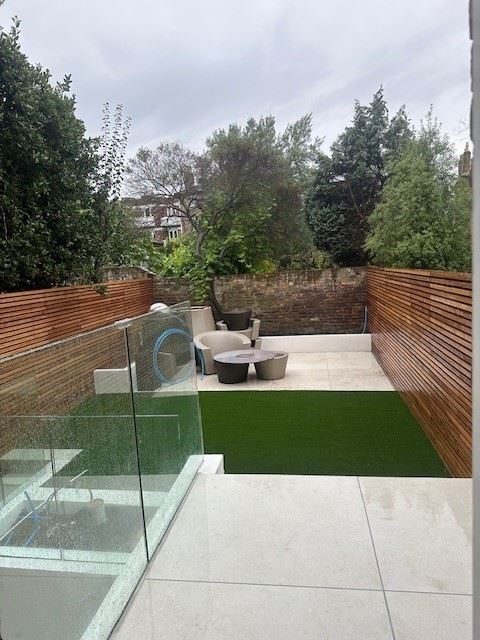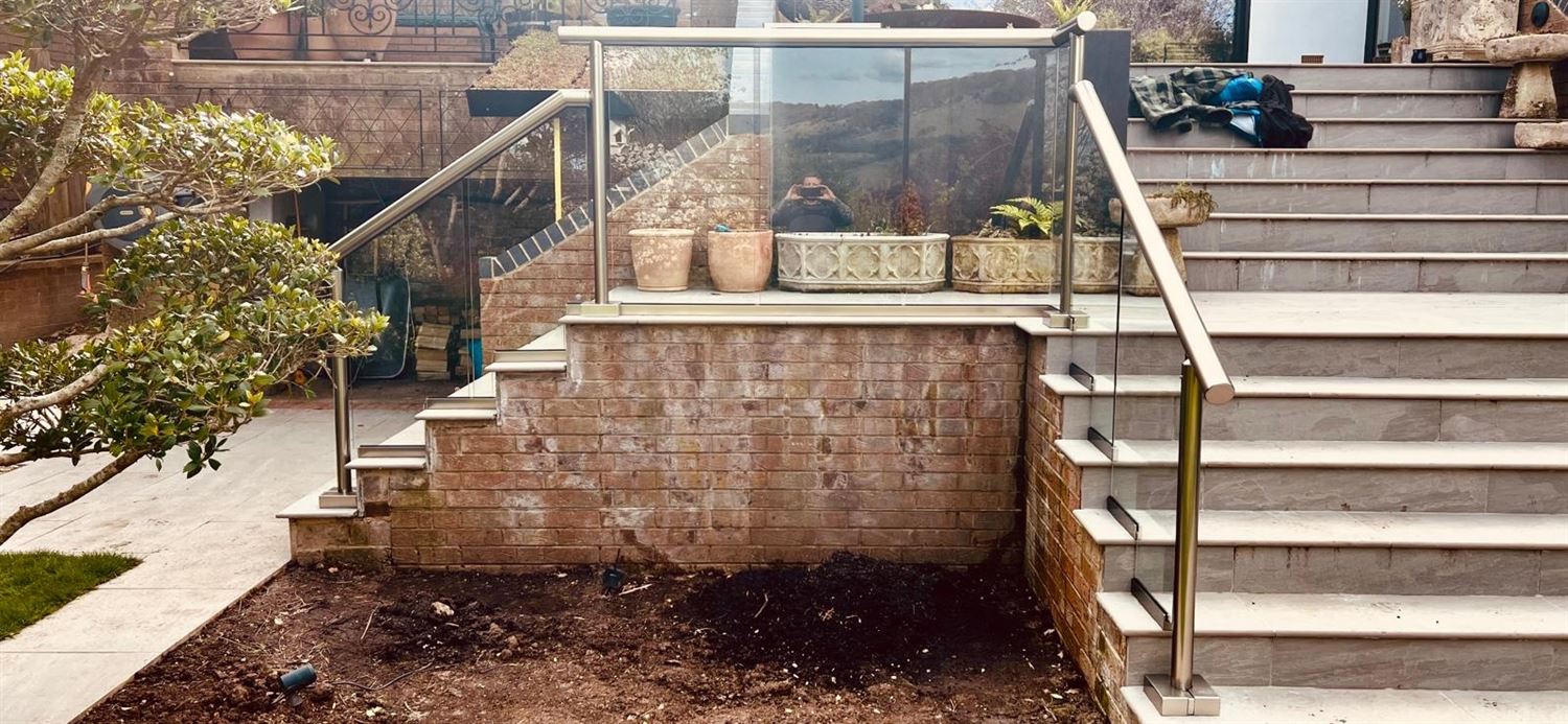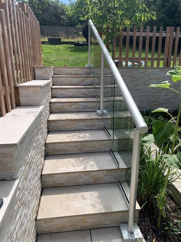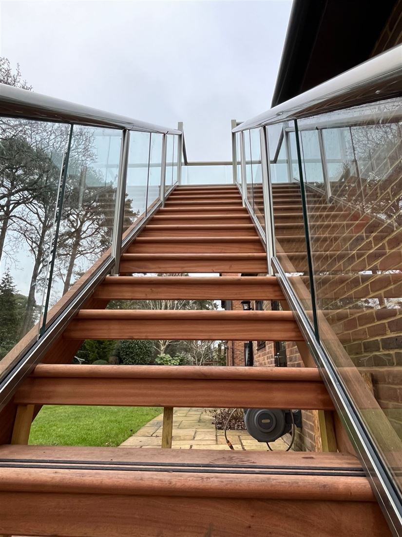 Royal Chrome balustrade on balcony and stairs to pretty garden