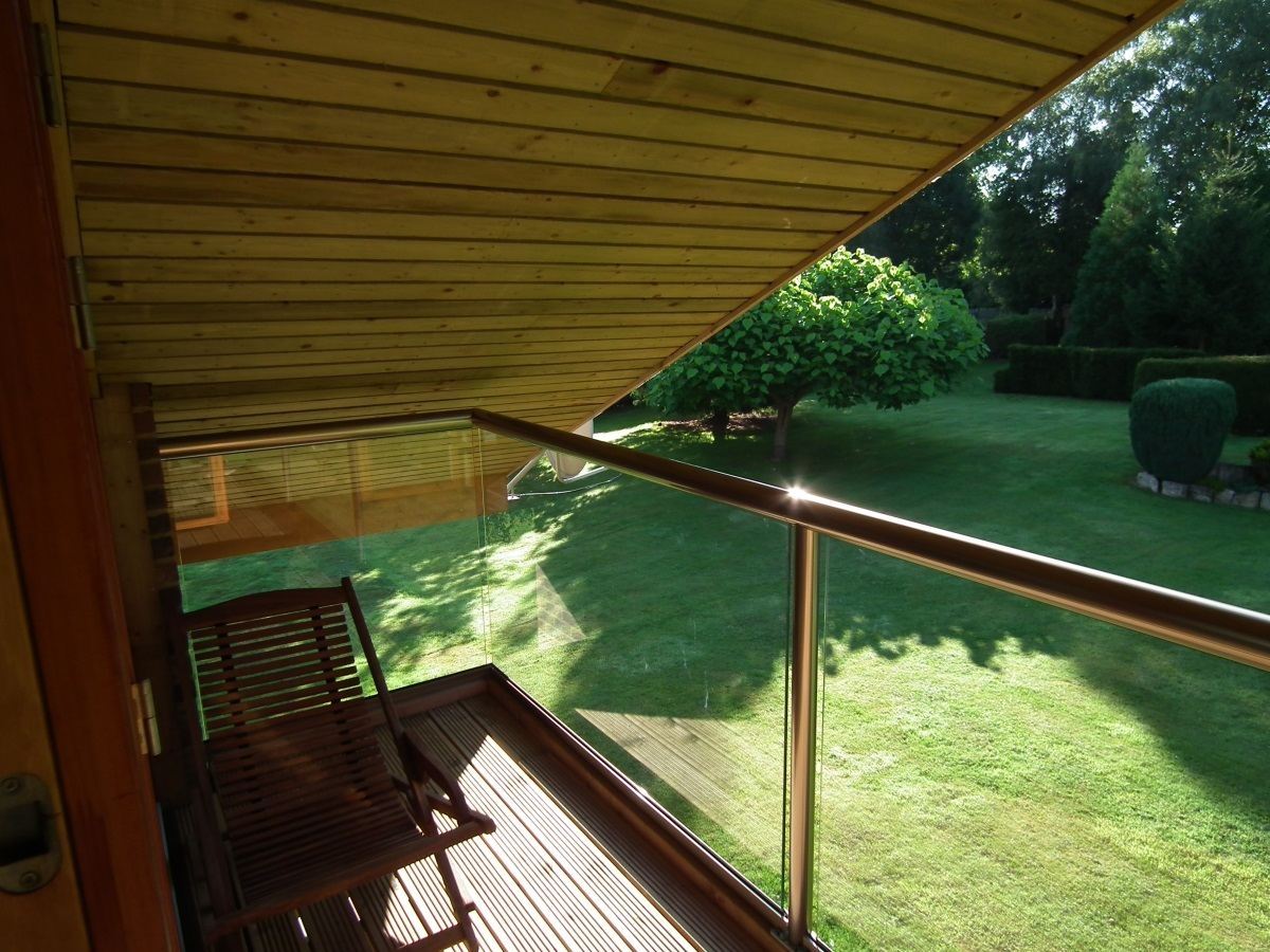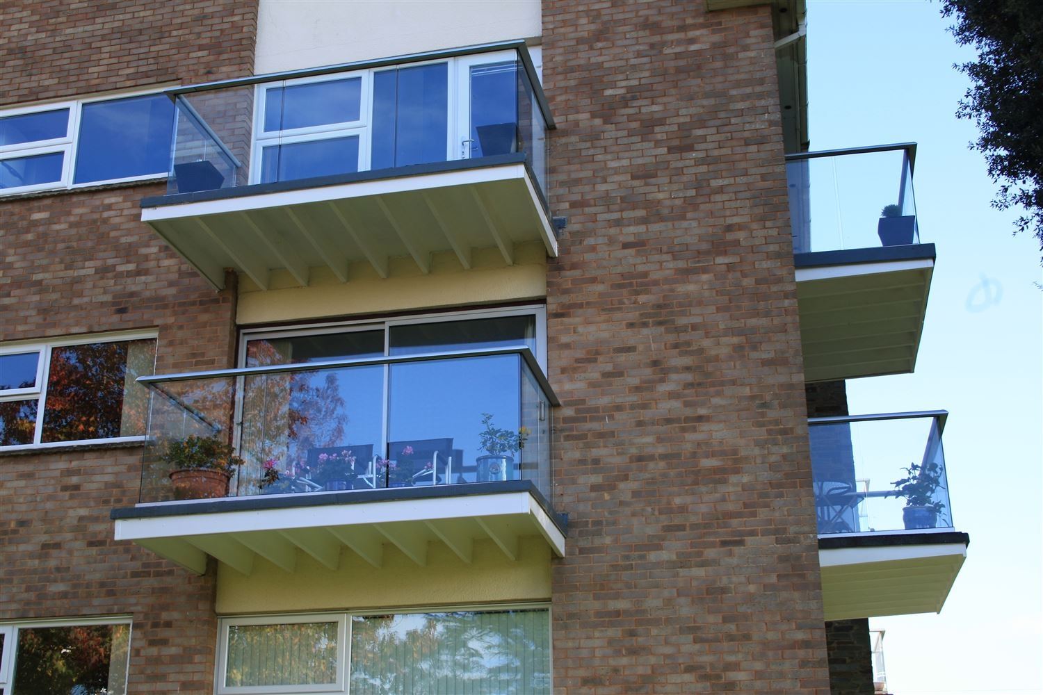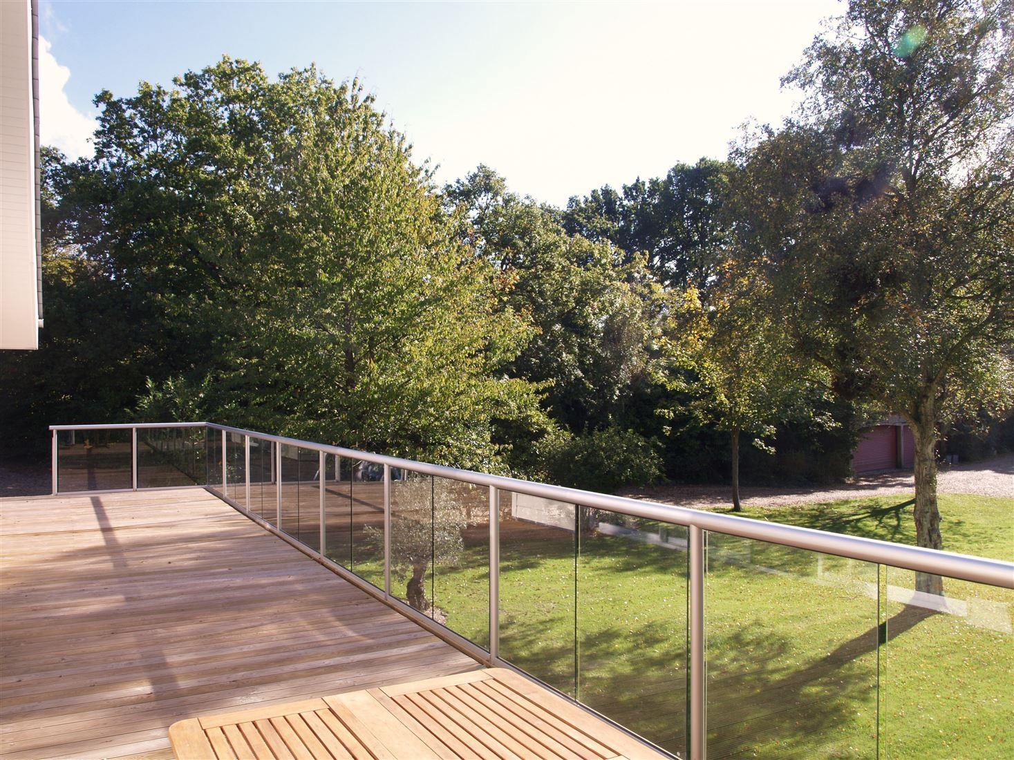 Curved balcony with Royal Chrome handrails overlooking the garden