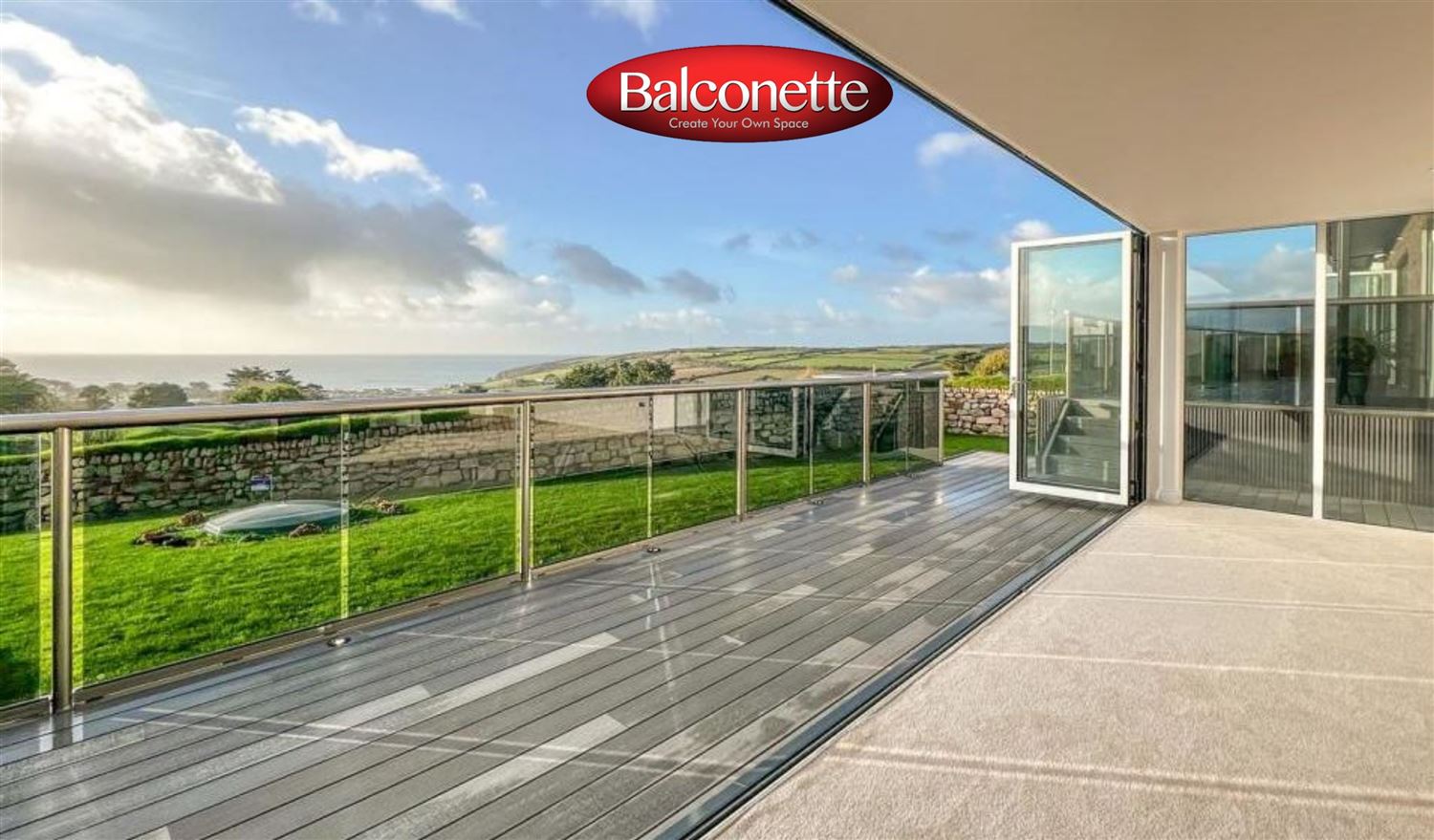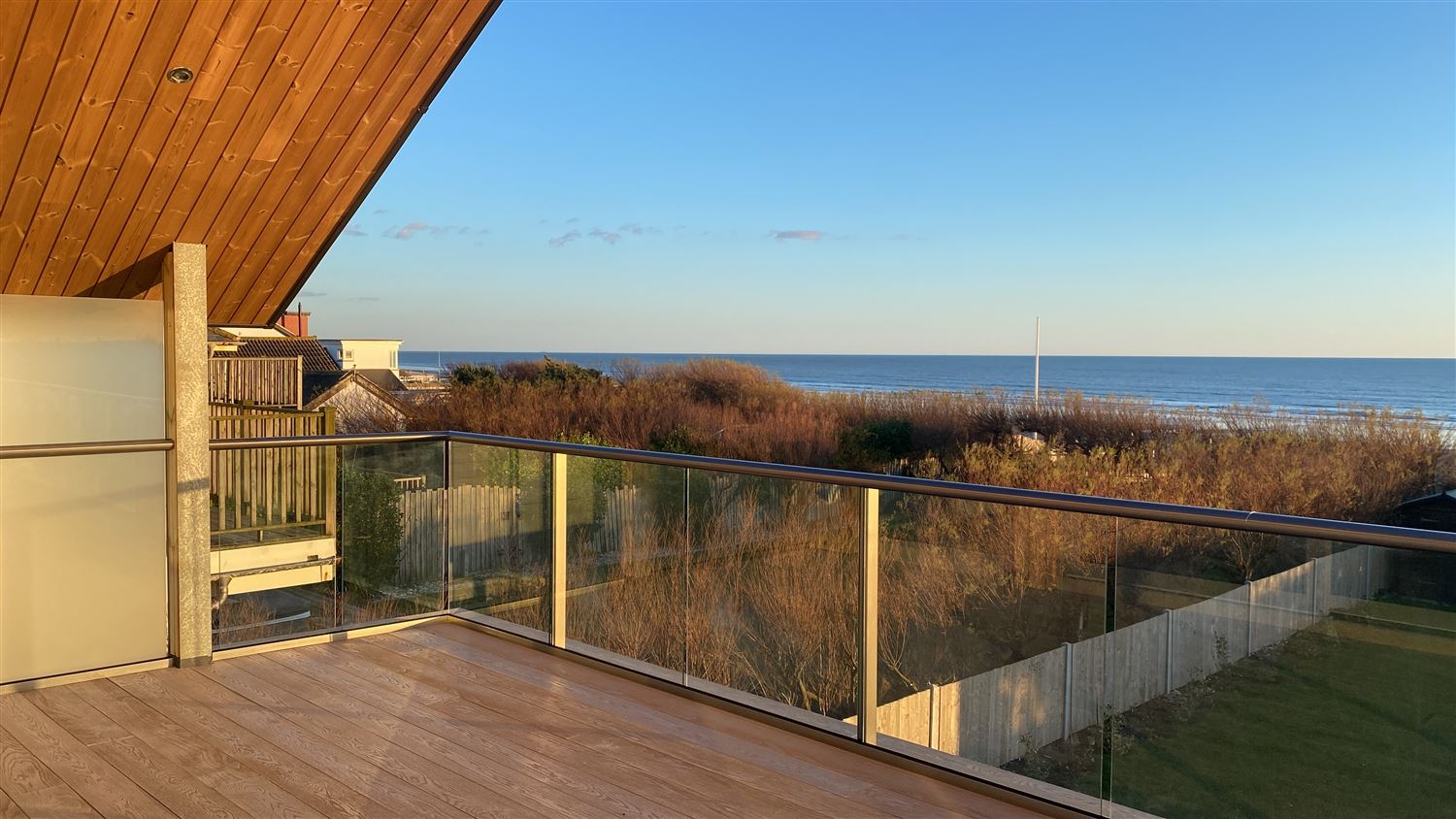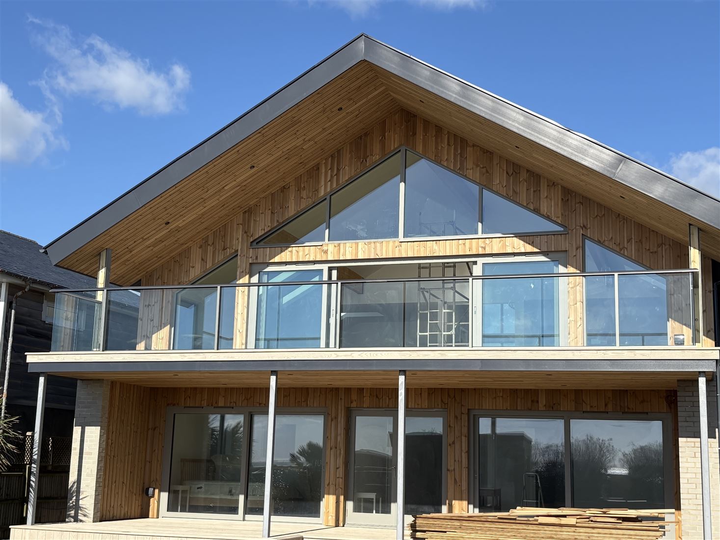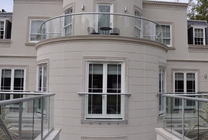 Curved and straight balustrades and Juliet balcony on coastal residency by the coast