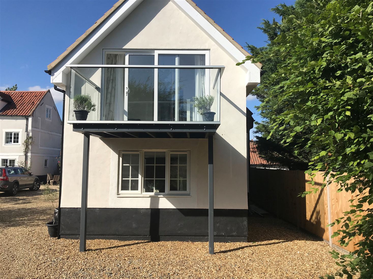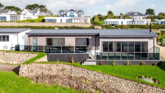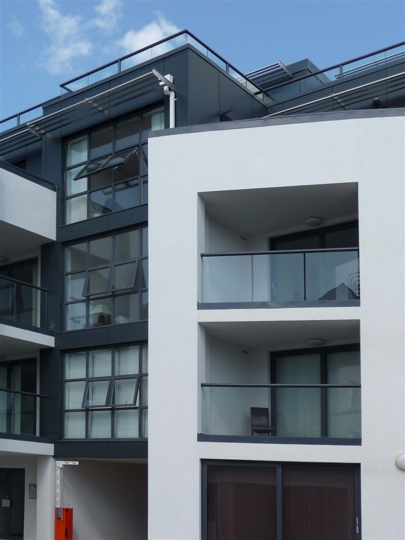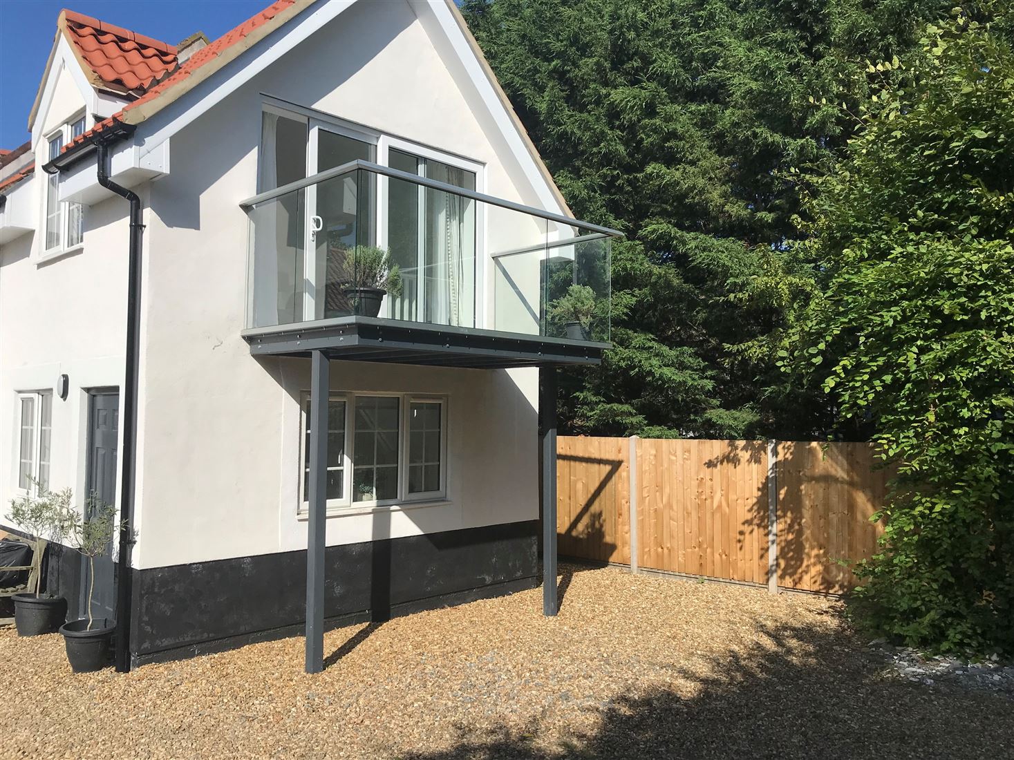 Curved and straight balustrades and Juliet balcony on coastal residency by the coast