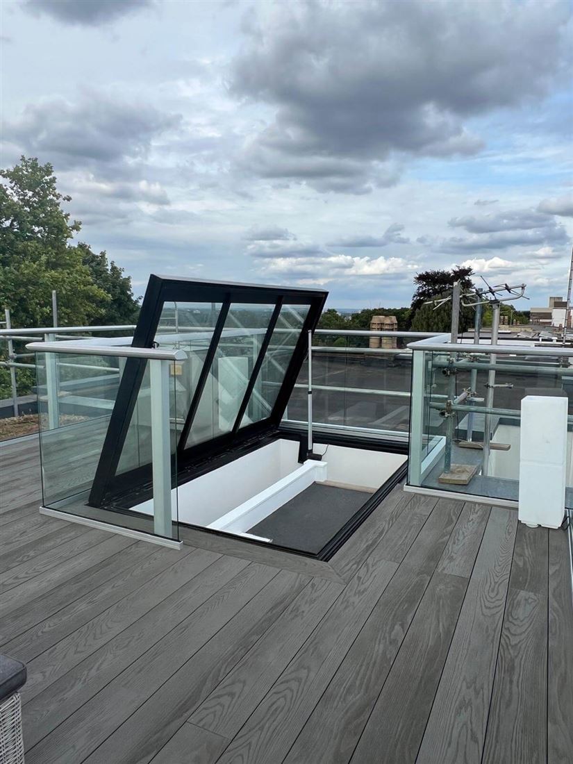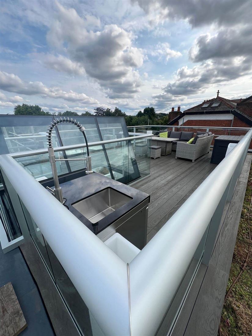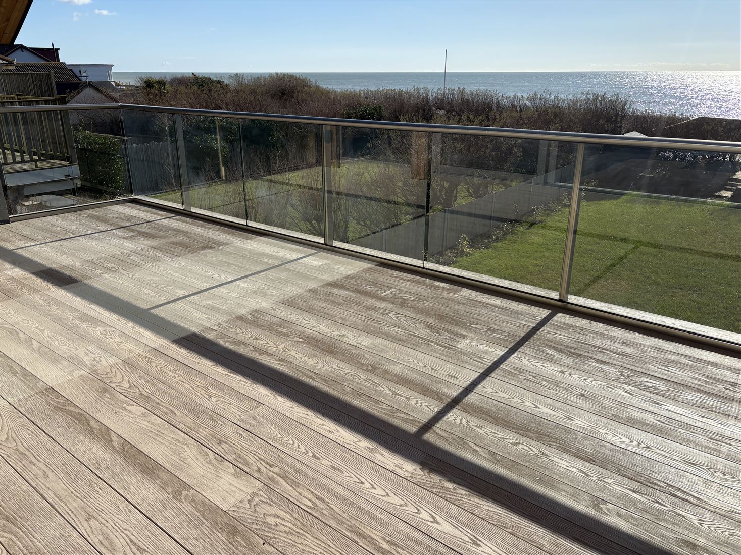 Royal Chrome balustrade with tinted glass and Composite Decking