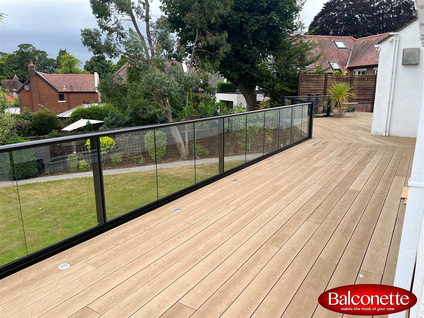 Tinted glass Royal Chrome balustrade with Composite Decking