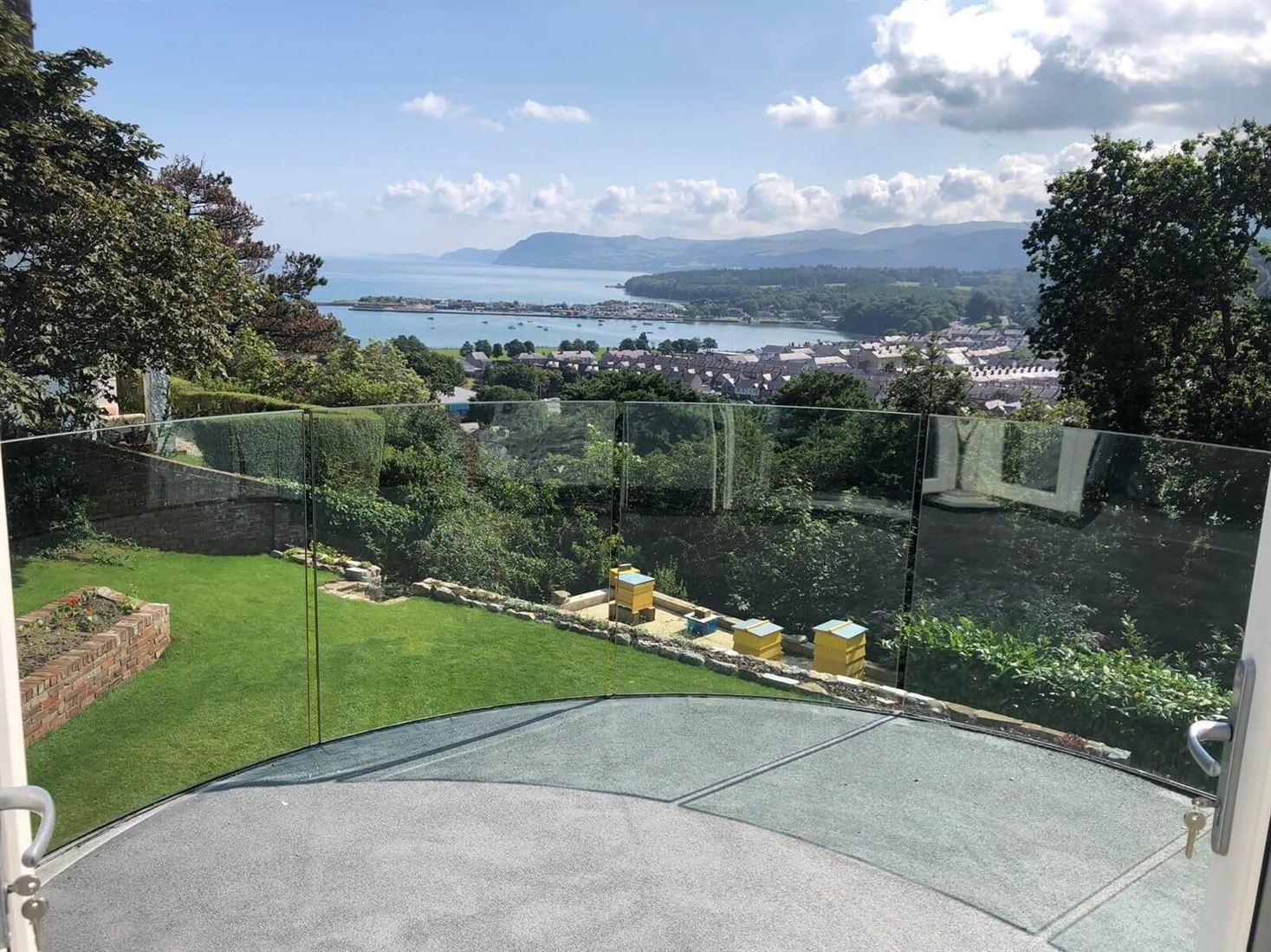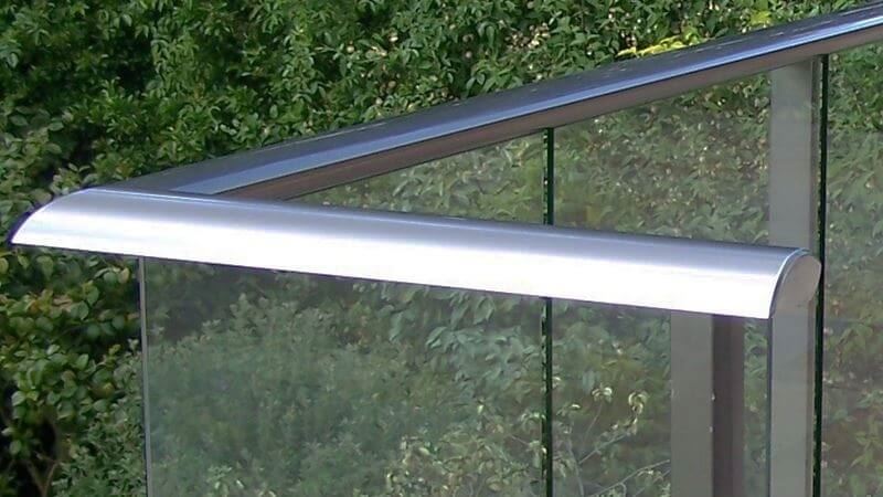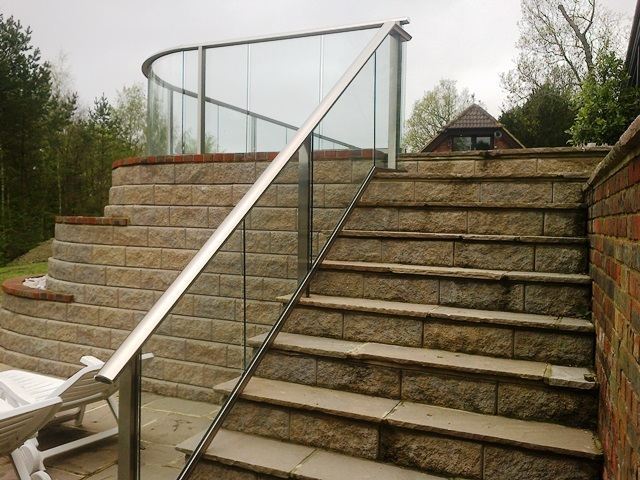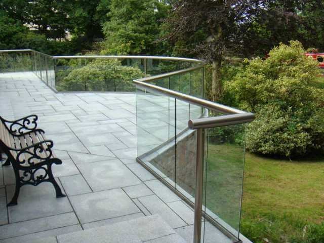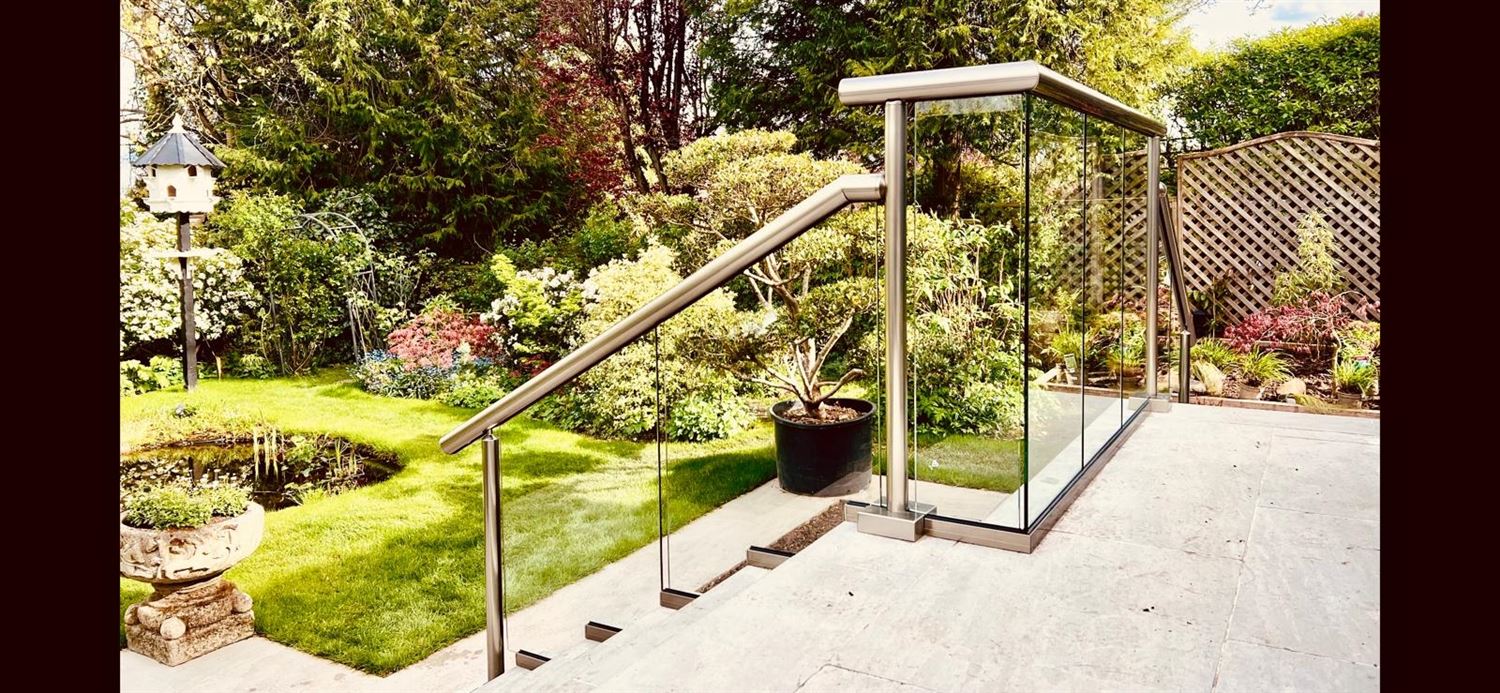 Wide curved balustrade with Royal Chrome handrails and beautiful garden views