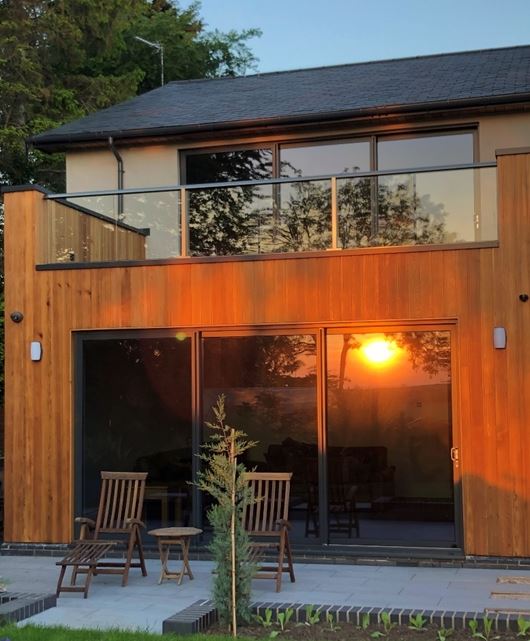 Side view of Trent Park with Silver aerofoil curved and straight balconies