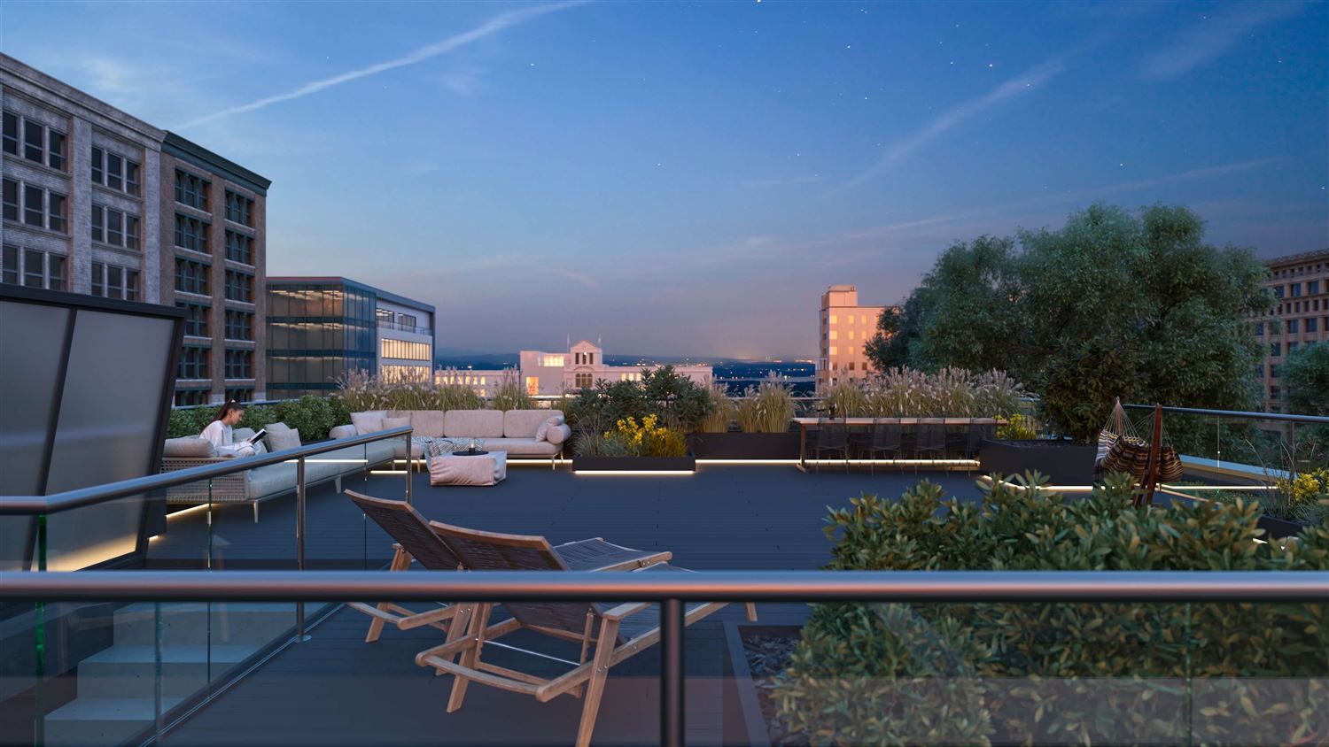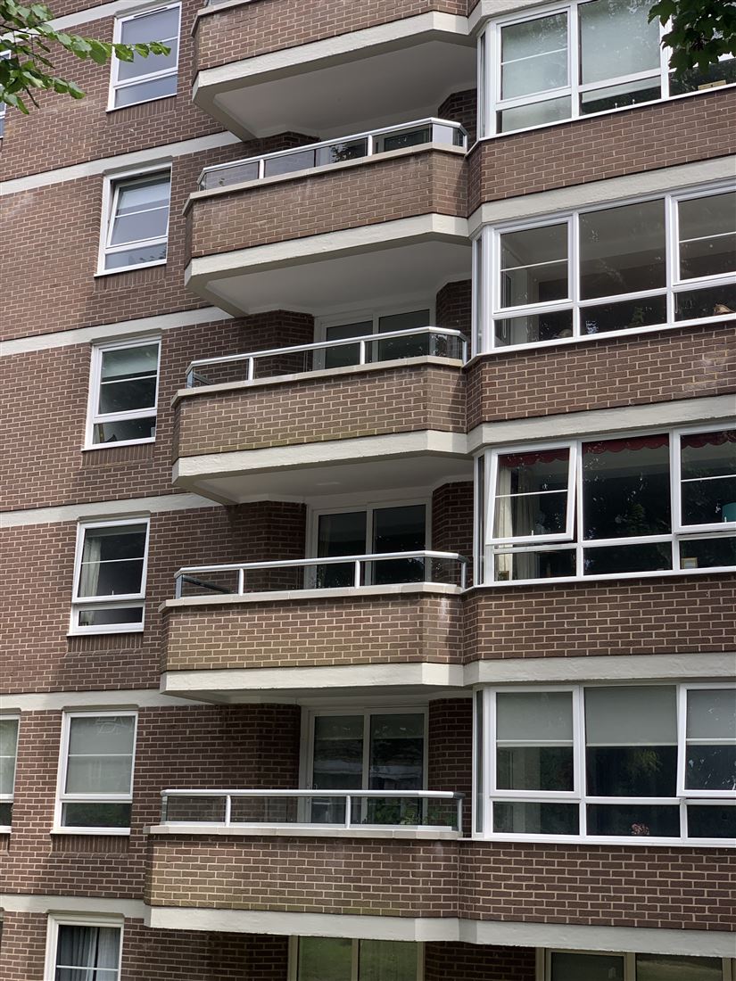Looking up at some of the balconies in the Baltimore Wharf project with Royal Chrome handrails