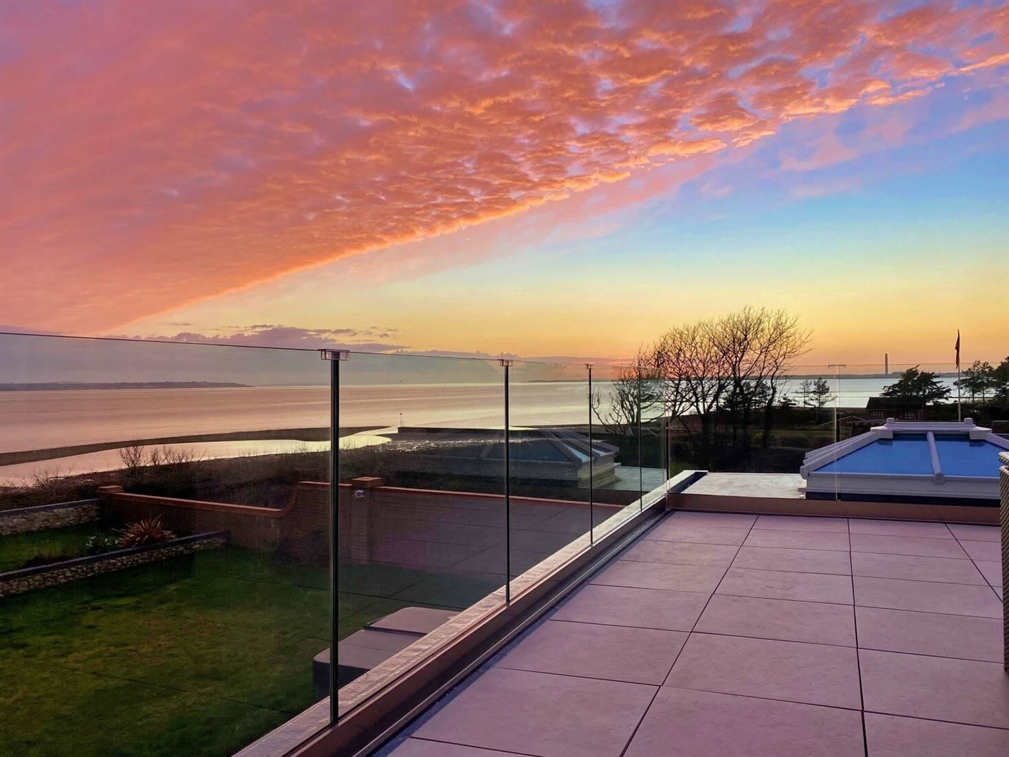 Curved and semi-frameless Royal Chrome balustrading with blue skies