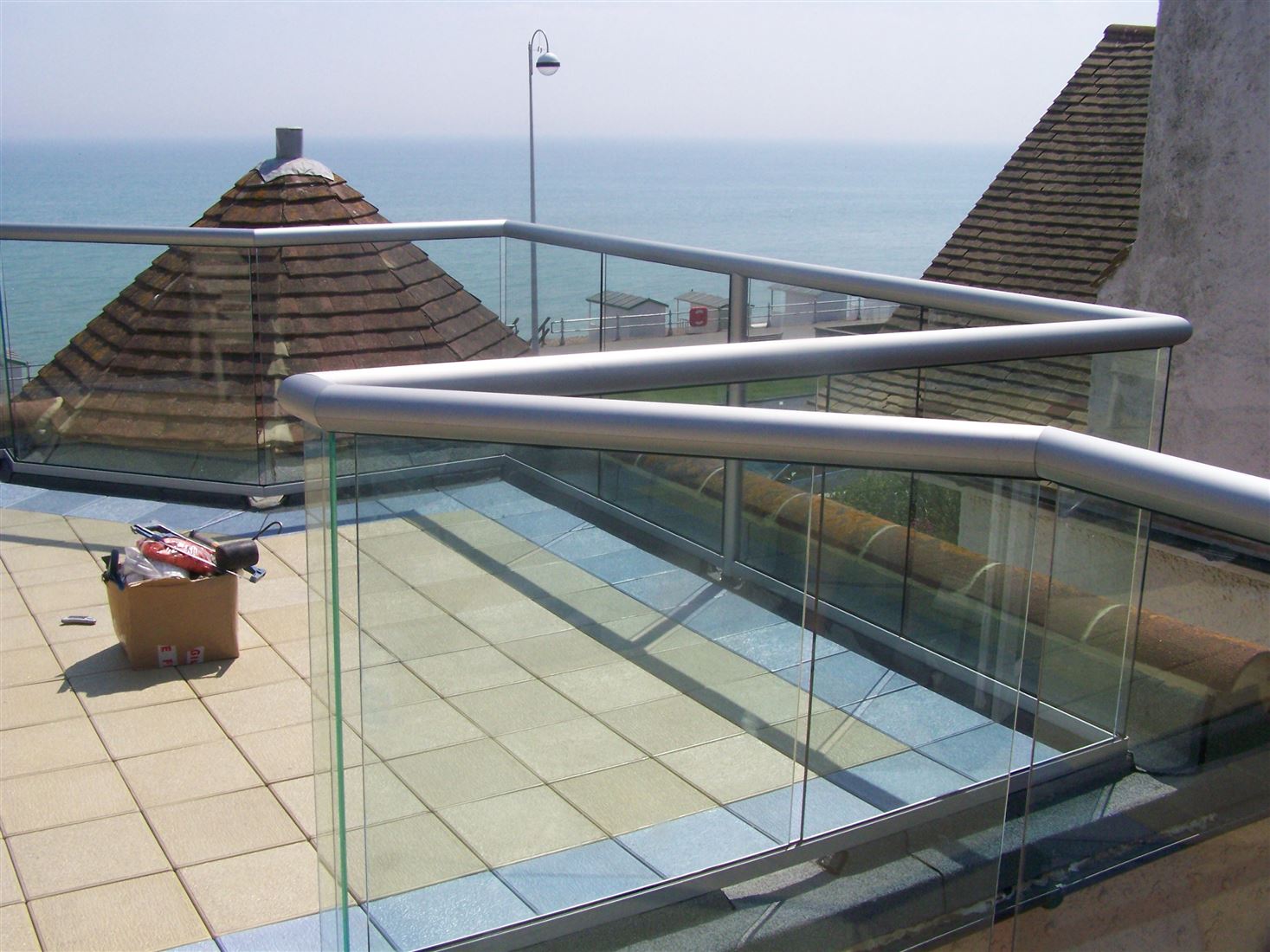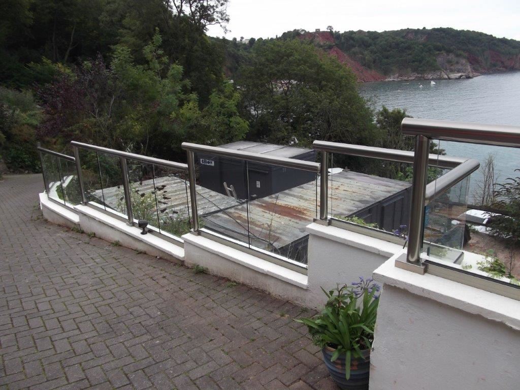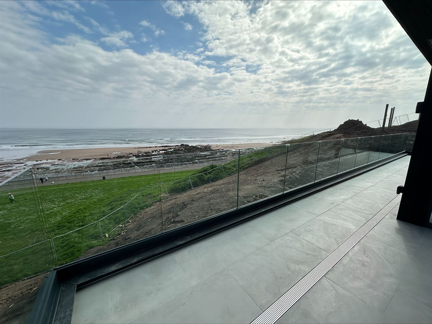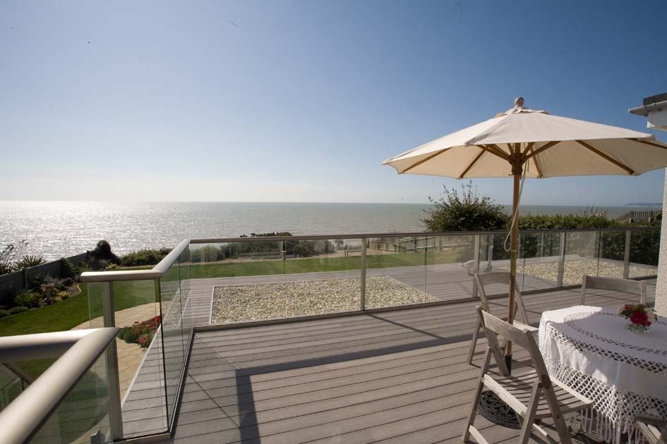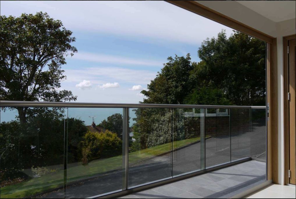 Royal Chrome balustrade with frosted glass privacy screens by the coast