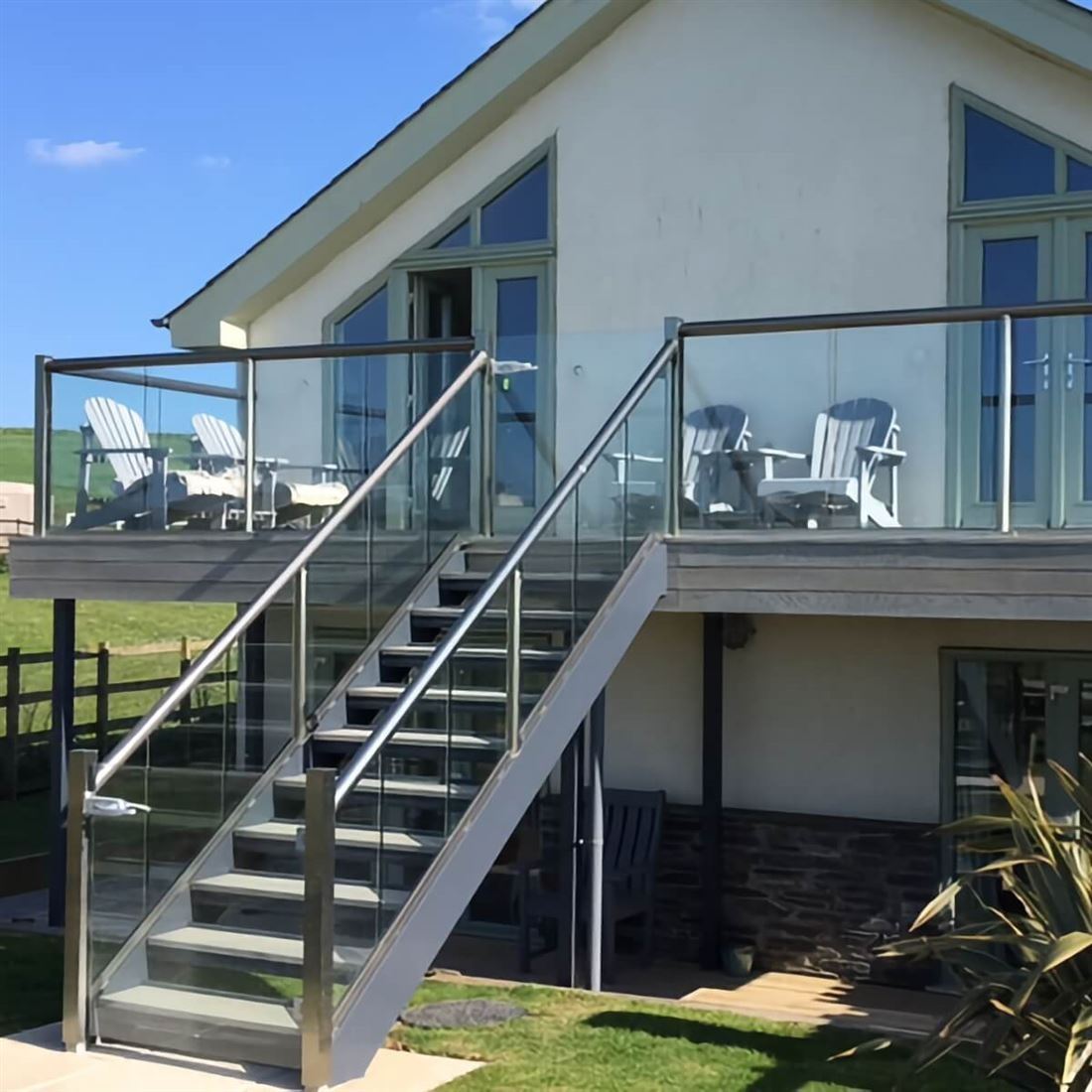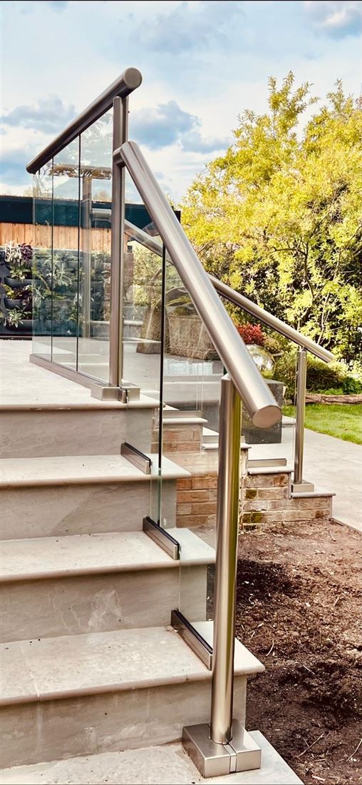 interestingly shaped house with Royal Chrome balustrading and handrails