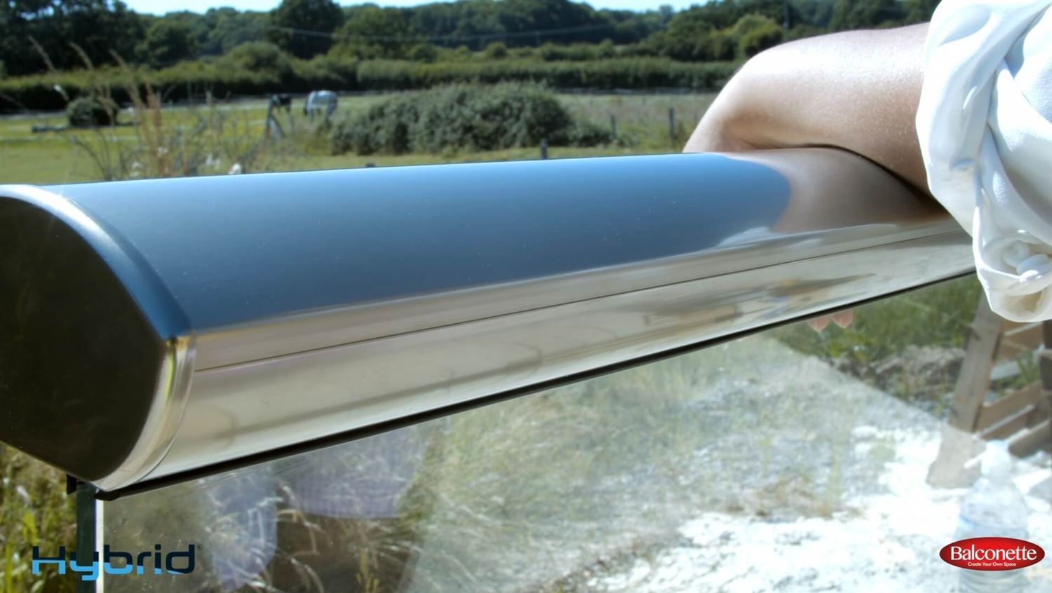 Sun shining on clear glass Royal Chrome Juliet balcony