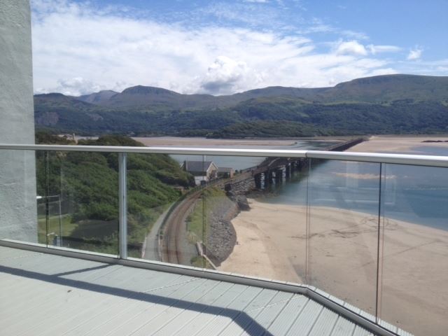 View from inside to ouside looking through the clear glass balcony to a nice view