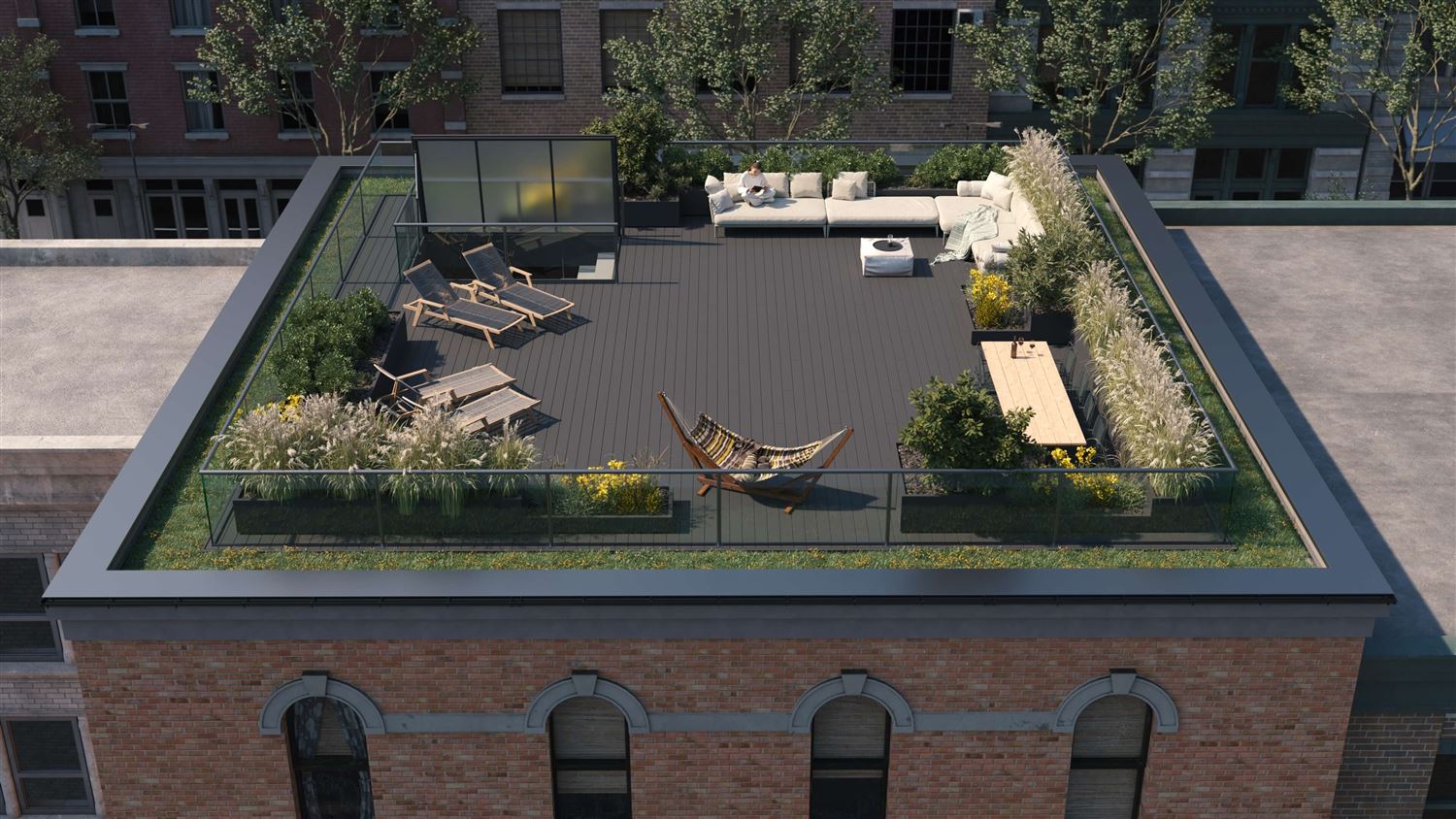 Balcony 1 bronze curved balustrade with detailed patio, plants, flowers and garden